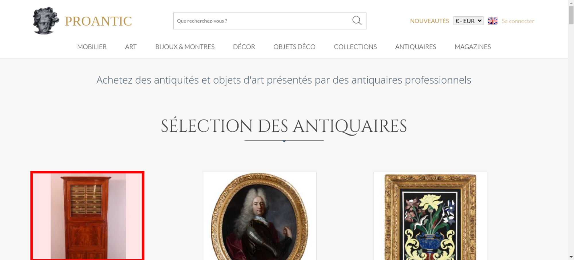 | Title | Proantic: Achetez des antiquités et objets d'art présentés par des ant |