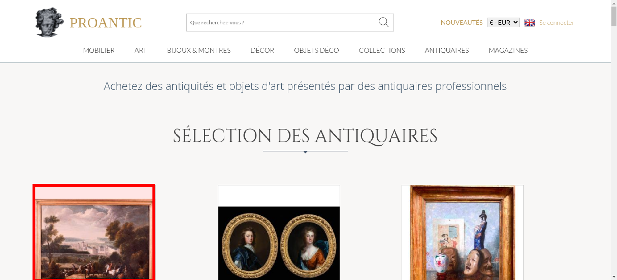 • <a class="nav-menu-hover-a" href="https://www.proantic.com/antiquites-nouveautes" style="padding:7px 0;font-family: 'Lato', serif; color: #BC9956;text-transform: uppercase;margin-bottom:0">nouveautés</a>