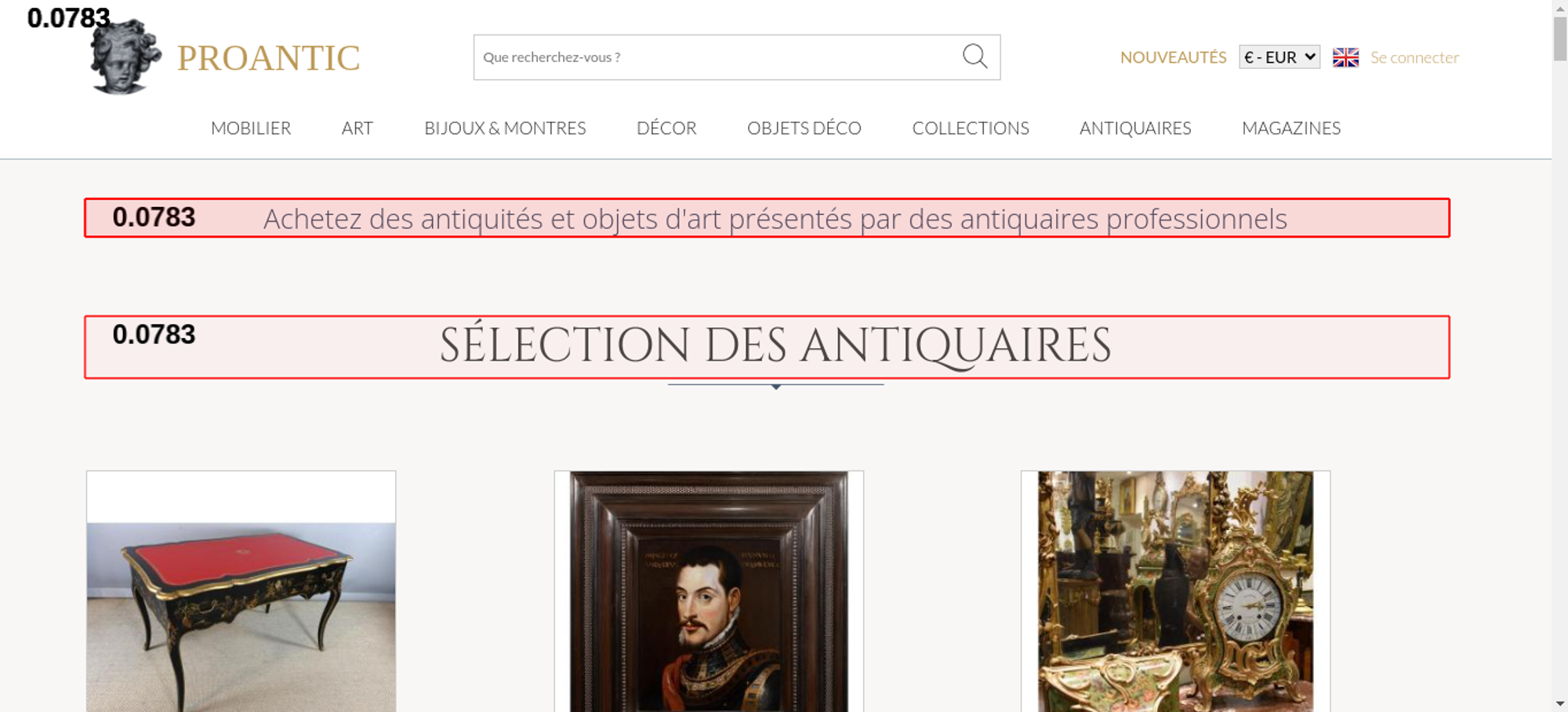 | Offenders: https://www.proantic.com/css/A.googlefonts.css,,q20251213034023+normalize_minify...cf.argL22mL8H.css https://www.proantic.com/css/A.sweetalert2-v1-2.css+carrousel-09.css,,q202512130...cf.Rz1MDGzIXY.css https://www.proantic.com/css/A.light.min.css.pagespeed.cf.fTn3z4osB6.css https://www.proantic.com/css/A.proantic.webflow.024.css,q20251213034023.pagespeed.cf.ecHK1jBoAe.css https://www.proantic.com/ico/logo_proantic_2024.png https://www.proantic.com/ico/englishflag.png https://www.proantic.com/ico/33flag20px.jpg https://www.proantic.com/ico/44flag20px.png https://www.proantic.com/ico/39flag20px.jpg https://www.proantic.com/js/sweetalert2.js https://www.proantic.com/ico/line.png https://www.proantic.com/ico/facebook_sm.png https://www.proantic.com/ico/pinterest_sm.png https://www.proantic.com/ico/INSTAGRAM-LOGO-SM.png https://www.proantic.com/ico/logo_proantic4a_sm_33.png https://www.googletagmanager.com/gtag/js?id=G-YP51KSLLWR https://www.proantic.com/galerie/mldantiquites/indexImage.jpg https://www.proantic.com/galerie/postaire-sebastien/img/small/1654727-main-691ce9b4060e3.jpg https://www.proantic.com/galerie/bilsceramiques/img/small/1668078-main-6937cc6d59e16.jpg https://www.proantic.com/galerie/arte-collection/img/small/1612788-main-68c12983e8ad0.jpg https://www.proantic.com/galerie/phc/img/small/1545475-main-693ee09eb9856.jpg https://www.proantic.com/galerie/bilsceramiques/img/small/1667320-main-6935c2181d5af.jpg https://www.proantic.com/galerie/antichita-ischia-romano/img/small/1661215-main-6929c0377795f.jpg https://www.proantic.com/galerie/adrienvega/img/small/1623172-main-68d82a4ae0284.jpg https://www.proantic.com/galerie/galeriefc/img/small/1662934-main-692dcaaf92099.jpg https://www.proantic.com/galerie/serignan/img/small/1671419-main-693d76d8a132c.jpg https://www.proantic.com/galerie/titanfineart/img/small/1636825-main-68f6b46679394.jpg https://www.proantic.com/galerie/laurybailly/img/small/1338284-main-66470c5a3a196.jpg https://www.proantic.com/galerie/la-valise-arlesienne/img/small/1668658-main-6938697358402.jpg https://www.proantic.com/galerie/adrienvega/img/small/1665292-main-6931dfd8e26f4.jpg https://www.proantic.com/galerie/adrienvega/img/small/1518348-main-67e7212c0b04e.jpg https://www.proantic.com/galerie/philippecote/img/small/1653945-main-691b35853be80.jpg https://www.proantic.com/galerie/violondingres/img/small/1653409-main-6919df9066e8a.jpg https://www.proantic.com/galerie/phc/img/small/1633930-main-68f0c35d580f8.jpg https://www.proantic.com/galerie/antiquitespromenade/img/small/1656722-main-6920a36bc59eb.jpg https://www.proantic.com/galerie/noblessedesgrandssiecles/img/small/1549989-main-6839ce66ab2cb.jpg https://www.proantic.com/galerie/lestresorsdegamaliel/img/small/1400051-main-66e33c8391ea2.jpg https://www.proantic.com/galerie/bilsceramiques/img/small/1671064-main-693c5a9e26234.jpg https://www.proantic.com/css/jquery-ui-1_10_3-minify.css https://static.doubleclick.net/instream/ad_status.js https://i.ytimg.com/vi/UbDi7Z6y4lA/sddefault.jpg...4lA/sddefault.jpg https://yt3.ggpht.com/4tWvbLsp8MC-PrLY5MN-RWJuCp7uVsgPLn_rfa0nUsKLD9CqylGq4VWVaJ...c0x00ffffff-no-rj https://www.gstatic.com/cv/js/sender/v1/cast_sender.js https://www.proantic.com/ico/proantic_ico_new_6.png https://www.gstatic.com/eureka/clank/132/cast_sender.js |