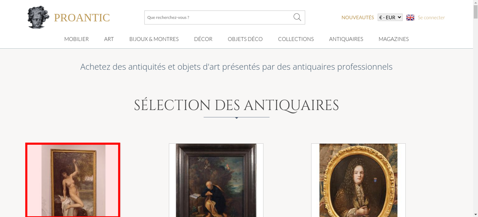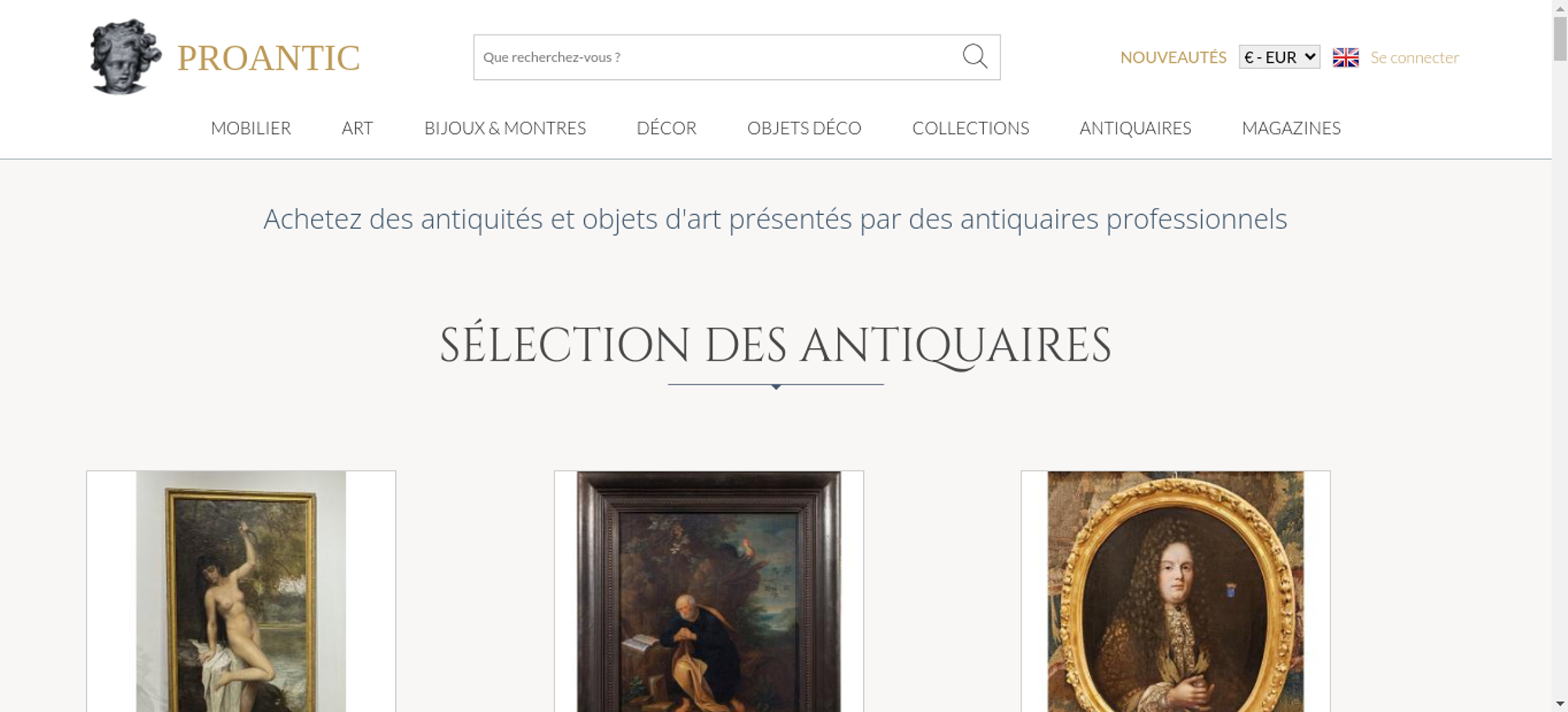 • <a class="nav-menu-hover-a" href="https://www.proantic.com/antiquites-nouveautes" style="padding:7px 0;font-family: 'Lato', serif; color: #BC9956;text-transform: uppercase;margin-bottom:0">nouveautés</a>