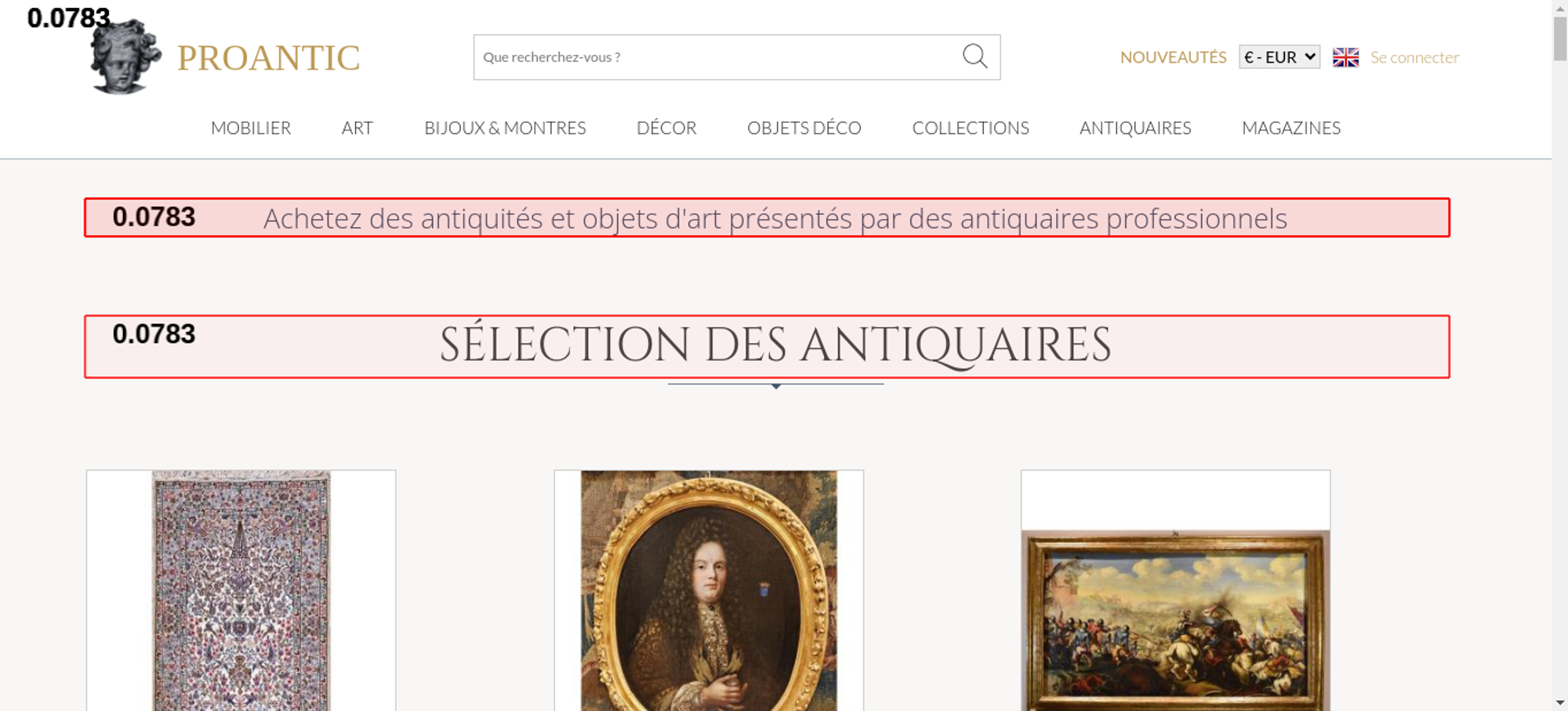 | Offenders: https://www.proantic.com/css/A.googlefonts.css,,q20251213034023+normalize_minify...cf.argL22mL8H.css https://www.proantic.com/css/A.sweetalert2-v1-2.css+carrousel-09.css,,q202512130...cf.Rz1MDGzIXY.css https://www.proantic.com/css/A.light.min.css.pagespeed.cf.fTn3z4osB6.css https://www.proantic.com/css/A.proantic.webflow.024.css,q20251213034023.pagespeed.cf.ecHK1jBoAe.css https://www.proantic.com/ico/logo_proantic_2024.png https://www.proantic.com/ico/englishflag.png https://www.proantic.com/ico/33flag20px.jpg https://www.proantic.com/ico/44flag20px.png https://www.proantic.com/ico/39flag20px.jpg https://www.proantic.com/ico/line.png https://www.proantic.com/js/sweetalert2.js https://www.proantic.com/ico/facebook_sm.png https://www.proantic.com/ico/pinterest_sm.png https://www.proantic.com/ico/INSTAGRAM-LOGO-SM.png https://www.proantic.com/ico/logo_proantic4a_sm_33.png https://www.googletagmanager.com/gtag/js?id=G-YP51KSLLWR https://www.proantic.com/galerie/serignan/242-63405fc5e700b.jpg https://www.proantic.com/galerie/galerie-buter/img/small/1401262-main-66e6b4f8d7ac5.jpg https://www.proantic.com/galerie/adrienvega/img/small/1425751-main-671d49208608f.jpg https://www.proantic.com/galerie/antichita-castelbarco/img/small/1677191-main-69490f37bcd55.jpg https://www.proantic.com/galerie/serignan/img/small/1677687-main-6949db42d751b.jpg https://www.proantic.com/galerie/galerie-buter/img/small/1059382-main-63b694d7aaac6.jpg https://www.proantic.com/galerie/galerie-buter/img/small/1502852-main-67c8a9303236a.jpg https://www.proantic.com/galerie/une-autre-epoque/img/small/1679874-main-6951613cded47.jpg https://www.proantic.com/galerie/adrienvega/img/small/1443123-main-6743b27a15b08.jpg https://www.proantic.com/galerie/galeriefc/img/small/1671915-main-693eb84f823da.jpg https://www.proantic.com/galerie/titanfineart/img/small/1675439-main-69452c8f3a49c.jpg https://www.proantic.com/galerie/antiquitespromenade/img/small/1672761-main-6940367335e6d.jpg https://www.proantic.com/galerie/antichita-ischia-romano/img/small/1675315-main-694519b35e5a4.jpg https://www.proantic.com/galerie/une-autre-epoque/img/small/768938-main-608d9a03337c0.jpg https://www.proantic.com/galerie/laurybailly/img/small/1679668-main-6950f6fc75dae.jpg https://www.proantic.com/galerie/arte-collection/img/small/1676953-main-69481a8e997c9.jpg https://www.proantic.com/galerie/philippecote/img/small/1658461-main-69247a6b6831b.jpg https://www.proantic.com/galerie/une-autre-epoque/img/small/925873-main-6249d7bb2db3b.jpg https://www.proantic.com/galerie/adrienvega/img/small/1553546-main-689bd462aa63b.jpg https://www.proantic.com/galerie/mldantiquites/img/small/1662782-main-692da2282f3d2.jpg https://www.proantic.com/galerie/antichita-ischia-romano/img/small/1650010-main-6912135f9dd58.jpg https://www.proantic.com/galerie/galeriefc/img/small/1676773-main-6947d3a6743cc.jpg https://www.proantic.com/css/jquery-ui-1_10_3-minify.css https://static.doubleclick.net/instream/ad_status.js https://i.ytimg.com/vi/UbDi7Z6y4lA/sddefault.jpg...4lA/sddefault.jpg https://yt3.ggpht.com/4tWvbLsp8MC-PrLY5MN-RWJuCp7uVsgPLn_rfa0nUsKLD9CqylGq4VWVaJ...c0x00ffffff-no-rj https://www.gstatic.com/cv/js/sender/v1/cast_sender.js https://www.proantic.com/ico/proantic_ico_new_6.png https://www.gstatic.com/eureka/clank/132/cast_sender.js |