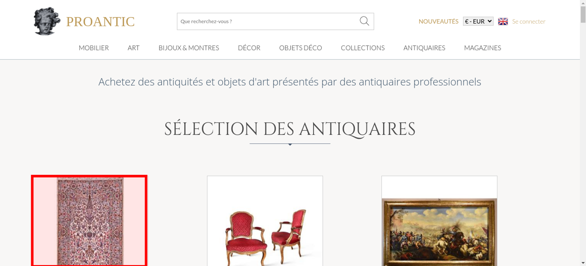 | Offenders: https://www.proantic.com/css/A.googlefonts.css,,q20251213034023+normalize_minify...cf.argL22mL8H.css https://www.proantic.com/css/A.sweetalert2-v1-2.css+carrousel-09.css,,q202512130...cf.Rz1MDGzIXY.css https://www.proantic.com/css/A.light.min.css.pagespeed.cf.fTn3z4osB6.css https://www.proantic.com/css/A.proantic.webflow.024.css,q20251213034023.pagespeed.cf.ecHK1jBoAe.css https://www.proantic.com/ico/logo_proantic_2024.png https://www.proantic.com/ico/englishflag.png https://www.proantic.com/ico/33flag20px.jpg https://www.proantic.com/ico/44flag20px.png https://www.proantic.com/ico/39flag20px.jpg https://www.proantic.com/js/sweetalert2.js https://www.proantic.com/ico/line.png https://www.proantic.com/ico/facebook_sm.png https://www.proantic.com/ico/pinterest_sm.png https://www.proantic.com/ico/INSTAGRAM-LOGO-SM.png https://www.proantic.com/ico/logo_proantic4a_sm_33.png https://www.googletagmanager.com/gtag/js?id=G-YP51KSLLWR https://www.proantic.com/galerie/serignan/242-63405fc5e700b.jpg https://www.proantic.com/galerie/galerie-buter/img/small/1401262-main-66e6b4f8d7ac5.jpg https://www.proantic.com/galerie/une-autre-epoque/img/small/925873-main-6249d7bb2db3b.jpg https://www.proantic.com/galerie/antichita-castelbarco/img/small/1677191-main-69490f37bcd55.jpg https://www.proantic.com/galerie/laurybailly/img/small/1679668-main-6950f6fc75dae.jpg https://www.proantic.com/galerie/titanfineart/img/small/1675439-main-69452c8f3a49c.jpg https://www.proantic.com/galerie/galeriefc/img/small/1676773-main-6947d3a6743cc.jpg https://www.proantic.com/galerie/galeriefc/img/small/1671915-main-693eb84f823da.jpg https://www.proantic.com/galerie/antichita-ischia-romano/img/small/1675315-main-694519b35e5a4.jpg https://www.proantic.com/galerie/galerie-buter/img/small/1059382-main-63b694d7aaac6.jpg https://www.proantic.com/galerie/serignan/img/small/1677687-main-6949db42d751b.jpg https://www.proantic.com/galerie/galerie-buter/img/small/1502852-main-67c8a9303236a.jpg https://www.proantic.com/galerie/antiquitespromenade/img/small/1672761-main-6940367335e6d.jpg https://www.proantic.com/galerie/antichita-ischia-romano/img/small/1670963-main-693c48ae177f4.jpg https://www.proantic.com/galerie/argeades/img/small/1677276-main-69492a26dd5ad.jpg https://www.proantic.com/galerie/mldantiquites/img/small/1662782-main-692da2282f3d2.jpg https://www.proantic.com/galerie/une-autre-epoque/img/small/1679874-main-6951613cded47.jpg https://www.proantic.com/galerie/adrienvega/img/small/1443123-main-6743b27a15b08.jpg https://www.proantic.com/galerie/adrienvega/img/small/1425751-main-671d49208608f.jpg https://www.proantic.com/galerie/argeades/img/small/1661886-main-692b1ad490a17.jpg https://www.proantic.com/galerie/une-autre-epoque/img/small/768938-main-608d9a03337c0.jpg https://www.proantic.com/galerie/adrienvega/img/small/1553546-main-689bd462aa63b.jpg https://www.proantic.com/css/jquery-ui-1_10_3-minify.css https://static.doubleclick.net/instream/ad_status.js https://i.ytimg.com/vi/UbDi7Z6y4lA/sddefault.jpg...4lA/sddefault.jpg https://yt3.ggpht.com/4tWvbLsp8MC-PrLY5MN-RWJuCp7uVsgPLn_rfa0nUsKLD9CqylGq4VWVaJ...c0x00ffffff-no-rj https://www.gstatic.com/cv/js/sender/v1/cast_sender.js https://www.proantic.com/ico/proantic_ico_new_6.png https://www.gstatic.com/eureka/clank/132/cast_sender.js |
