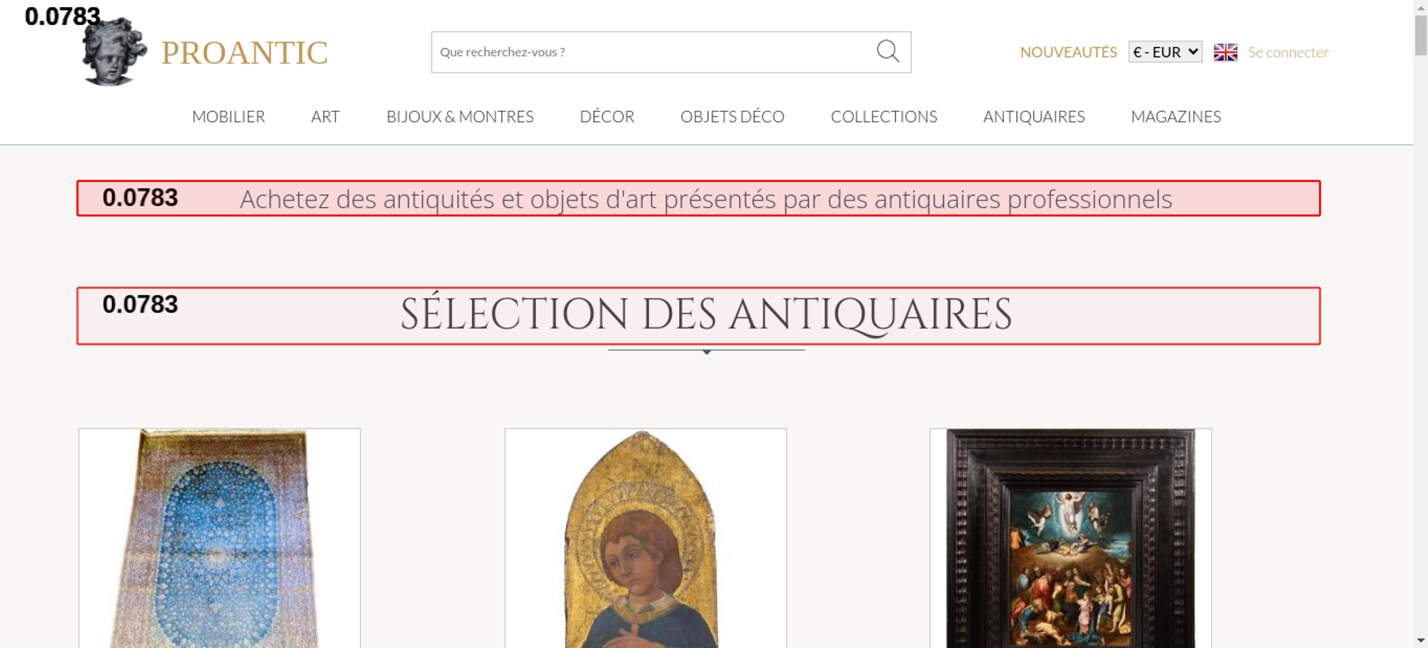 | Offenders: https://www.proantic.com/css/A.googlefonts.css,,q20251213034023+normalize_minify...cf.argL22mL8H.css https://www.proantic.com/css/A.sweetalert2-v1-2.css+carrousel-09.css,,q202512130...cf.Rz1MDGzIXY.css https://www.proantic.com/css/A.light.min.css.pagespeed.cf.fTn3z4osB6.css https://www.proantic.com/css/A.proantic.webflow.024.css,q20251213034023.pagespeed.cf.ecHK1jBoAe.css https://www.proantic.com/ico/logo_proantic_2024.png https://www.proantic.com/ico/englishflag.png https://www.proantic.com/ico/33flag20px.jpg https://www.proantic.com/ico/44flag20px.png https://www.proantic.com/ico/39flag20px.jpg https://www.proantic.com/js/sweetalert2.js https://www.proantic.com/ico/line.png https://www.proantic.com/ico/facebook_sm.png https://www.proantic.com/ico/pinterest_sm.png https://www.proantic.com/ico/INSTAGRAM-LOGO-SM.png https://www.proantic.com/ico/logo_proantic4a_sm_33.png https://www.googletagmanager.com/gtag/js?id=G-YP51KSLLWR https://www.proantic.com/galerie/seigneuremilie/279-6172bd7e0f2c6.jpg https://www.proantic.com/galerie/galerie-buter/img/small/1068608-main-63ccfe19aeb90.jpg https://www.proantic.com/galerie/arte-collection/img/small/1663906-main-693576b615465.jpg https://www.proantic.com/galerie/galeriefc/img/small/1635534-main-68f383e2727b8.jpg https://www.proantic.com/galerie/mldantiquites/img/small/1671726-main-693e6a7e40664.jpg https://www.proantic.com/galerie/misslittlebottle-antiques/img/small/1655023-main-691dd2ece8cd5.jpg https://www.proantic.com/galerie/antiquites-nicolas-hakoun/img/small/1663910-main-693032821aba2.jpg https://www.proantic.com/galerie/antichita-ischia-romano/img/small/1524282-main-6957af3780ea3.jpg https://www.proantic.com/galerie/antiquites-nicolas-hakoun/img/small/1394292-main-675060da280eb.jpg https://www.proantic.com/galerie/mldantiquites/img/small/1671216-main-69523e9aa8ae3.jpg https://www.proantic.com/galerie/galerie-buter/img/small/1021358-main-635b98b8f227e.jpg https://www.proantic.com/galerie/antichita-castelbarco/img/small/1679275-main-694f9dfd96190.jpg https://www.proantic.com/galerie/misslittlebottle-antiques/img/small/1636704-main-68f664f660470.jpg https://www.proantic.com/galerie/decorhome/img/small/1613195-main-68e77987ceff6.jpg https://www.proantic.com/galerie/decorhome/img/small/1668856-main-693ad7d73d96d.jpg https://www.proantic.com/galerie/antichita-castelbarco/img/small/1680002-main-695245c996026.jpg https://www.proantic.com/galerie/galeriefc/img/small/1037494-main-63810fb4d6ab1.jpg https://www.proantic.com/galerie/galerie-buter/img/small/1584547-main-6874fd3d792db.jpg https://www.proantic.com/galerie/antichita-ischia-romano/img/small/1423362-main-68975a26ce581.jpg https://www.proantic.com/galerie/noblessedesgrandssiecles/img/small/1129306-main-646cf6d2447ef.jpg https://www.proantic.com/galerie/laurybailly/img/small/1618609-main-68cd924be4887.jpg https://www.proantic.com/galerie/laurybailly/img/small/1402586-main-66e9a33a81671.jpg https://www.proantic.com/css/jquery-ui-1_10_3-minify.css https://static.doubleclick.net/instream/ad_status.js https://i.ytimg.com/vi/UbDi7Z6y4lA/sddefault.jpg...4lA/sddefault.jpg https://yt3.ggpht.com/4tWvbLsp8MC-PrLY5MN-RWJuCp7uVsgPLn_rfa0nUsKLD9CqylGq4VWVaJ...c0x00ffffff-no-rj https://www.gstatic.com/cv/js/sender/v1/cast_sender.js https://www.proantic.com/ico/proantic_ico_new_6.png https://www.gstatic.com/eureka/clank/132/cast_sender.js |