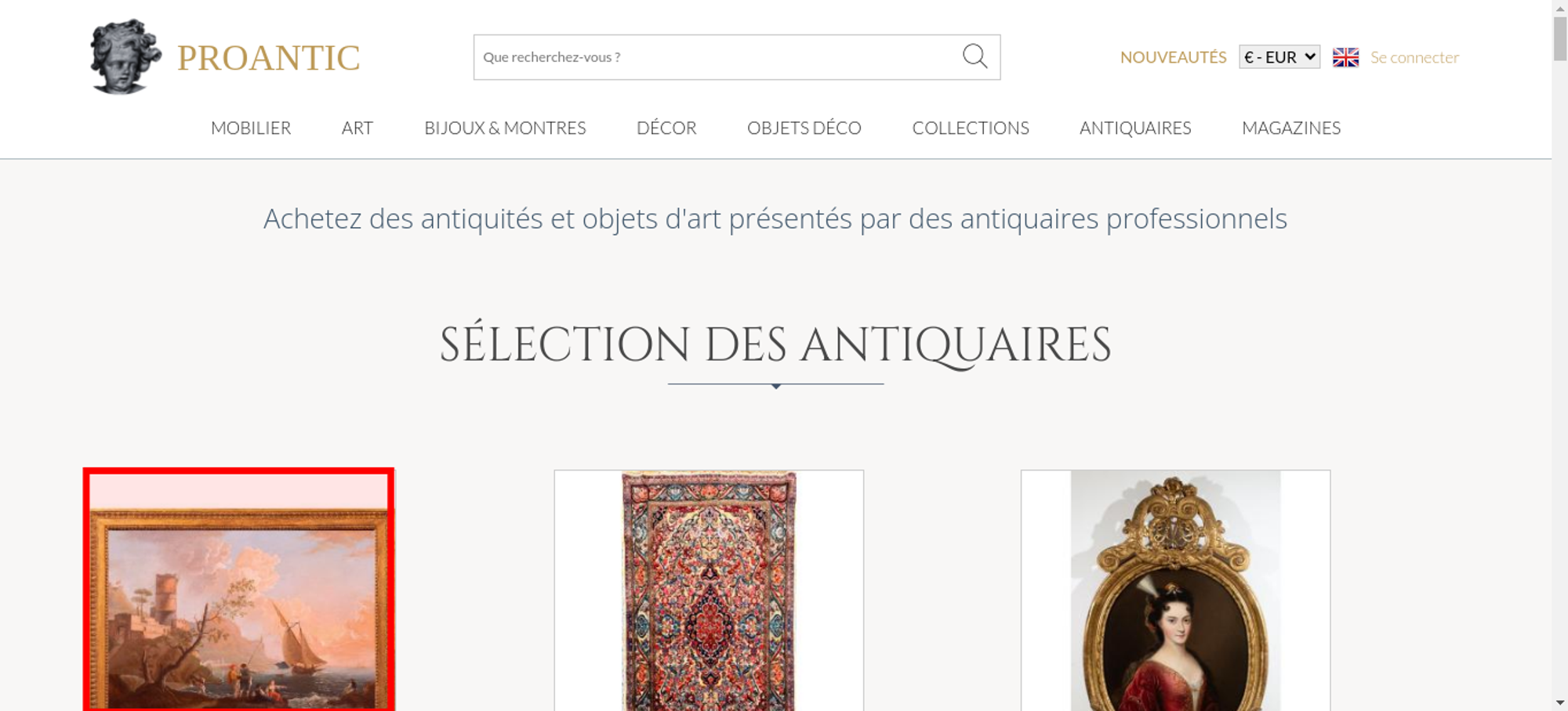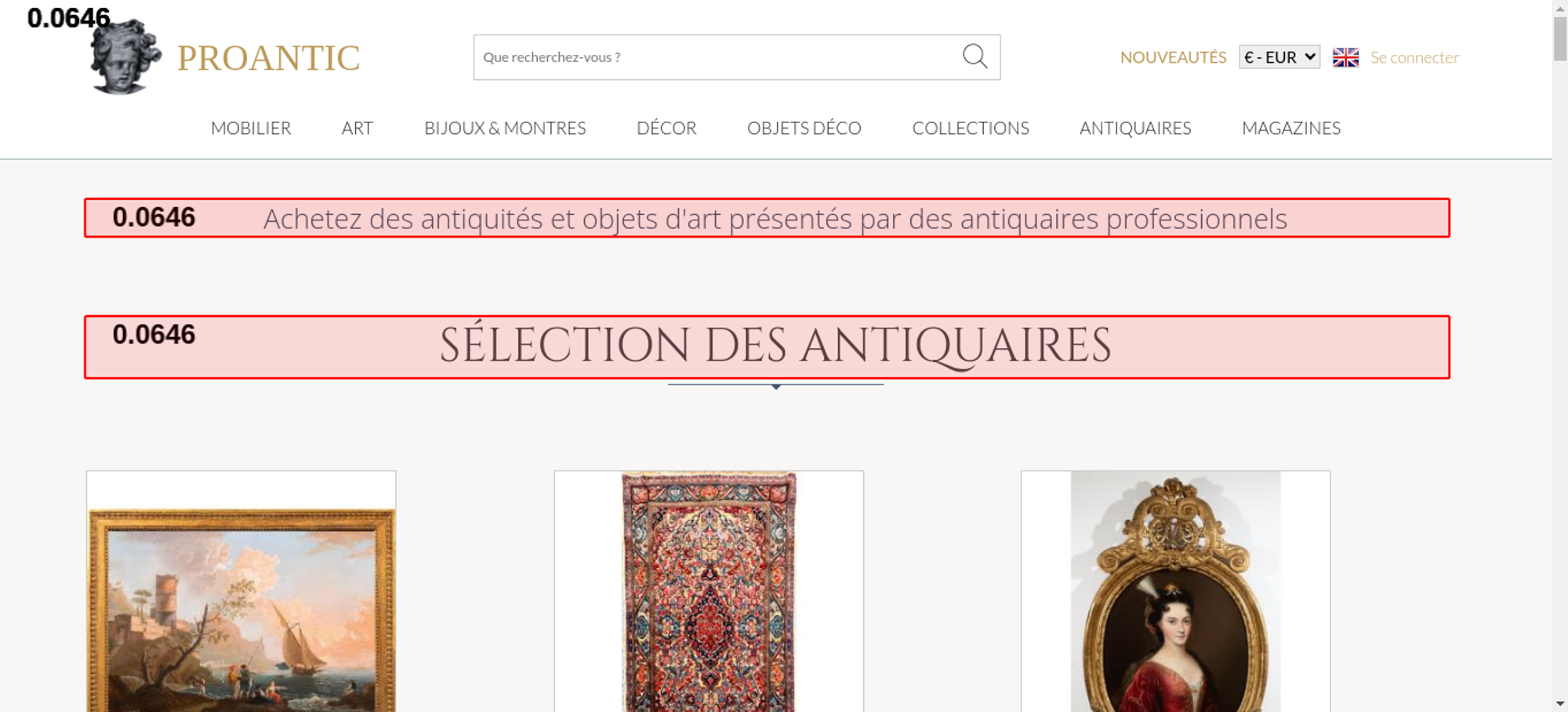 | Offenders: https://www.proantic.com/css/A.googlefonts.css,,qtimestampcssproantic+normalize_...cf.argL22mL8H.css https://www.proantic.com/css/A.sweetalert2-v1-2.css+carrousel-09.css,,qtimestamp...cf.59P_56I8JF.css https://www.proantic.com/css/A.sharp-solid.min.css+light.min.css,Mcc.4mM6ZiXh03....cf.s9J1L34NK4.css https://www.proantic.com/css/A.proantic.webflow.024.css,qtimestampcssproantic.pa...cf.ecHK1jBoAe.css https://www.proantic.com/ico/logo_proantic_2024.png https://www.proantic.com/ico/englishflag.png https://www.proantic.com/ico/33flag20px.jpg https://www.proantic.com/ico/44flag20px.png https://www.proantic.com/ico/39flag20px.jpg https://www.proantic.com/js/sweetalert2.js https://www.proantic.com/ico/line.png https://www.proantic.com/ico/facebook_sm.png https://www.proantic.com/ico/pinterest_sm.png https://www.proantic.com/ico/INSTAGRAM-LOGO-SM.png https://www.proantic.com/ico/logo_proantic4a_sm_33.png https://www.googletagmanager.com/gtag/js?id=G-YP51KSLLWR https://www.proantic.com/galerie/adrienvega/575-63f22d271e111.jpg https://www.proantic.com/galerie/laurybailly/img/small/1686515-main-6963e5343760e.jpg https://www.proantic.com/galerie/galerie-buter/img/small/1584547-main-6874fd3d792db.jpg https://www.proantic.com/galerie/galeriefc/img/small/1611021-main-68bc060504fed.jpg https://www.proantic.com/galerie/mldantiquites/img/small/1686319-main-6963969d74ce3.jpg https://www.proantic.com/galerie/serignan/img/small/1677621-main-69499084053ef.jpg https://www.proantic.com/galerie/galerie-buter/img/small/1572280-main-68597fa72fbe4.jpg https://www.proantic.com/galerie/titanfineart/img/small/1677055-main-6948354bf3965.jpg https://www.proantic.com/galerie/laurybailly/img/small/1500610-main-67c42fa8ce45e.jpg https://www.proantic.com/galerie/adrienvega/img/small/1656617-main-69208fb163205.jpg https://www.proantic.com/galerie/antichita-castelbarco/img/small/1681350-main-69578c699b701.jpg https://www.proantic.com/galerie/antichita-castelbarco/img/small/1680826-main-6954f4ddab4dc.jpg https://www.proantic.com/galerie/adrienvega/img/small/1657365-main-6921e11ced643.jpg https://www.proantic.com/galerie/philippecote/img/small/1670704-main-693c1f798bd68.jpg https://www.proantic.com/galerie/apollon-art-and-antiques/img/small/1681146-main-695e685bd8aa2.jpg https://www.proantic.com/galerie/art-eclectisme/img/small/1574174-main-68edfd2aee2be.jpg https://www.proantic.com/galerie/apollon-art-and-antiques/img/small/1682141-main-695fba44c29b1.jpg https://www.proantic.com/galerie/titanfineart/img/small/1675998-main-6945d69c109a6.jpg https://www.proantic.com/galerie/edithdavidson/img/small/1686534-main-6963e69319882.jpg https://www.proantic.com/galerie/edithdavidson/img/small/1678314-main-694bb8cc661ec.jpg https://www.proantic.com/galerie/mldantiquites/img/small/1612561-main-68c033ff3531f.jpg https://www.proantic.com/galerie/galeriefc/img/small/1686547-main-6963ee4341b9d.jpg https://www.proantic.com/css/jquery-ui-1_10_3-minify.css https://static.doubleclick.net/instream/ad_status.js https://i.ytimg.com/vi/UbDi7Z6y4lA/sddefault.jpg...4lA/sddefault.jpg https://yt3.ggpht.com/4tWvbLsp8MC-PrLY5MN-RWJuCp7uVsgPLn_rfa0nUsKLD9CqylGq4VWVaJ...c0x00ffffff-no-rj https://www.gstatic.com/cv/js/sender/v1/cast_sender.js https://www.proantic.com/ico/proantic_ico_new_6.png https://www.gstatic.com/eureka/clank/132/cast_sender.js |