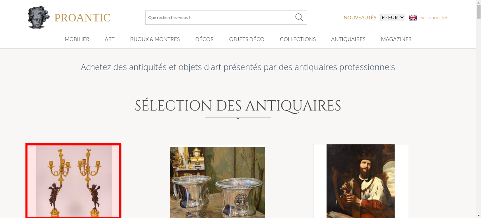 • <a class="nav-menu-hover-a" href="https://www.proantic.com/antiquites-nouveautes" style="padding:7px 0;font-family: 'Lato', serif; color: #BC9956;text-transform: uppercase;margin-bottom:0">nouveautés</a>