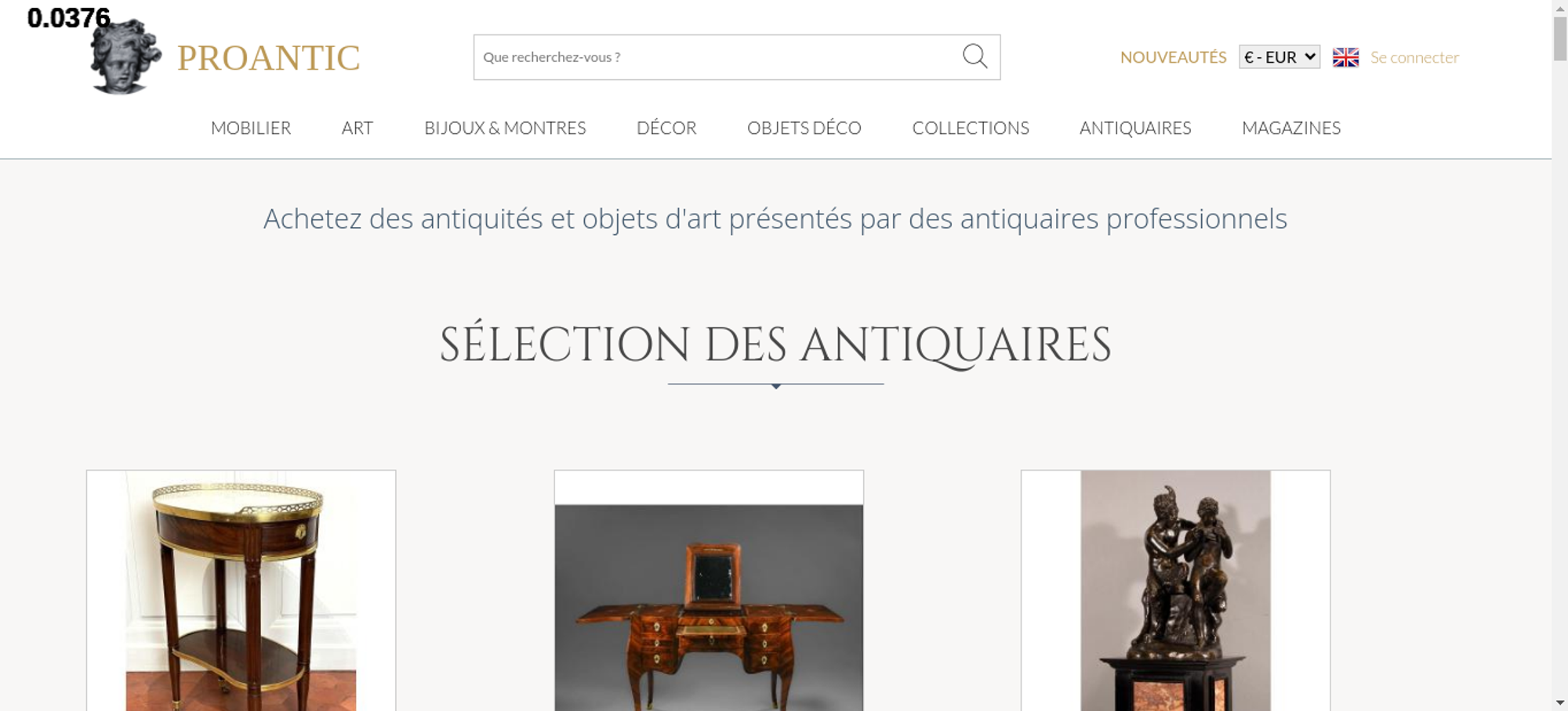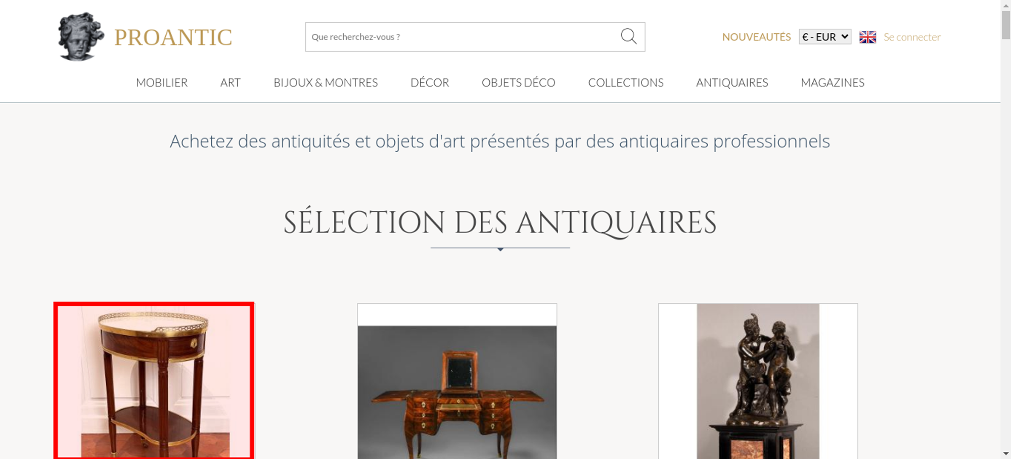 • <a class="nav-menu-hover-a" href="https://www.proantic.com/antiquites-nouveautes" style="padding:7px 0;font-family: 'Lato', serif; color: #BC9956;text-transform: uppercase;margin-bottom:0">nouveautés</a>