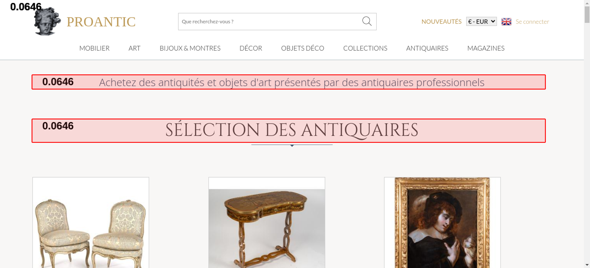 | Offenders: https://www.proantic.com/css/A.googlefonts.css,,qtimestampcssproantic+normalize_...cf.argL22mL8H.css https://www.proantic.com/css/A.sweetalert2-v1-2.css+carrousel-09.css,,qtimestamp...cf.59P_56I8JF.css https://www.proantic.com/css/A.sharp-solid.min.css+light.min.css,Mcc.4mM6ZiXh03....cf.s9J1L34NK4.css https://www.proantic.com/css/A.proantic.webflow.024.css,qtimestampcssproantic.pa...cf.ecHK1jBoAe.css https://www.proantic.com/ico/logo_proantic_2024.png https://www.proantic.com/ico/englishflag.png https://www.proantic.com/ico/33flag20px.jpg https://www.proantic.com/ico/44flag20px.png https://www.proantic.com/ico/39flag20px.jpg https://www.proantic.com/js/sweetalert2.js https://www.proantic.com/ico/line.png https://www.proantic.com/ico/facebook_sm.png https://www.proantic.com/ico/pinterest_sm.png https://www.proantic.com/ico/INSTAGRAM-LOGO-SM.png https://www.proantic.com/ico/logo_proantic4a_sm_33.png https://www.googletagmanager.com/gtag/js?id=G-YP51KSLLWR https://www.proantic.com/galerie/jullion/indexImage.jpg https://www.proantic.com/galerie/une-autre-epoque/img/small/1702977-main-69871e538ef3b.jpg https://www.proantic.com/galerie/mldantiquites/img/small/1694192-main-6974855f83f4a.jpg https://www.proantic.com/galerie/galeriefc/img/small/1636508-main-68f623b229aee.jpg https://www.proantic.com/galerie/antichita-castelbarco/img/small/1700770-main-698303c5abd2c.jpg https://www.proantic.com/galerie/des-pulls-dans-ma-commode/img/small/1668655-main-695a9640adcdc.jpg https://www.proantic.com/galerie/titanfineart/img/small/1699517-main-697fb125a92c5.jpg https://www.proantic.com/galerie/phc/img/small/1560714-main-68ba0d14295c5.jpg https://www.proantic.com/galerie/mldantiquites/img/small/1703486-main-69887fad10697.jpg https://www.proantic.com/galerie/seigneuremilie/img/small/1700369-main-698222414eb00.jpg https://www.proantic.com/galerie/des-pulls-dans-ma-commode/img/small/1696482-main-69791bb9c1859.jpg https://www.proantic.com/galerie/laurybailly/img/small/1698647-main-697de3086d37b.jpg https://www.proantic.com/galerie/laurybailly/img/small/903267-main-6210101e02fa4.jpg https://www.proantic.com/galerie/serignan/img/small/1701205-main-6983797ea72b1.jpg https://www.proantic.com/galerie/phc/img/small/1519493-main-693b194287de8.jpg https://www.proantic.com/galerie/antichita-castelbarco/img/small/1699572-main-69805fc3b4902.jpg https://www.proantic.com/galerie/une-autre-epoque/img/small/1703331-main-69878fcd2d30a.jpg https://www.proantic.com/galerie/une-autre-epoque/img/small/1703291-main-69878008d1323.jpg https://www.proantic.com/galerie/phc/img/small/1457190-main-68bb36bbf0e83.jpg https://www.proantic.com/galerie/lestresorsdegamaliel/img/small/1661716-main-692aec5fc2096.jpg https://www.proantic.com/galerie/seigneuremilie/img/small/1691055-main-696e3f22eaa72.jpg https://www.proantic.com/galerie/galeriefc/img/small/1627678-main-68e2cdaa9d94e.jpg https://www.proantic.com/css/jquery-ui-1_10_3-minify.css https://static.doubleclick.net/instream/ad_status.js https://i.ytimg.com/vi/UbDi7Z6y4lA/sddefault.jpg...4lA/sddefault.jpg https://yt3.ggpht.com/4tWvbLsp8MC-PrLY5MN-RWJuCp7uVsgPLn_rfa0nUsKLD9CqylGq4VWVaJ...c0x00ffffff-no-rj https://www.gstatic.com/cv/js/sender/v1/cast_sender.js https://www.proantic.com/ico/proantic_ico_new_6.png https://www.gstatic.com/eureka/clank/132/cast_sender.js |