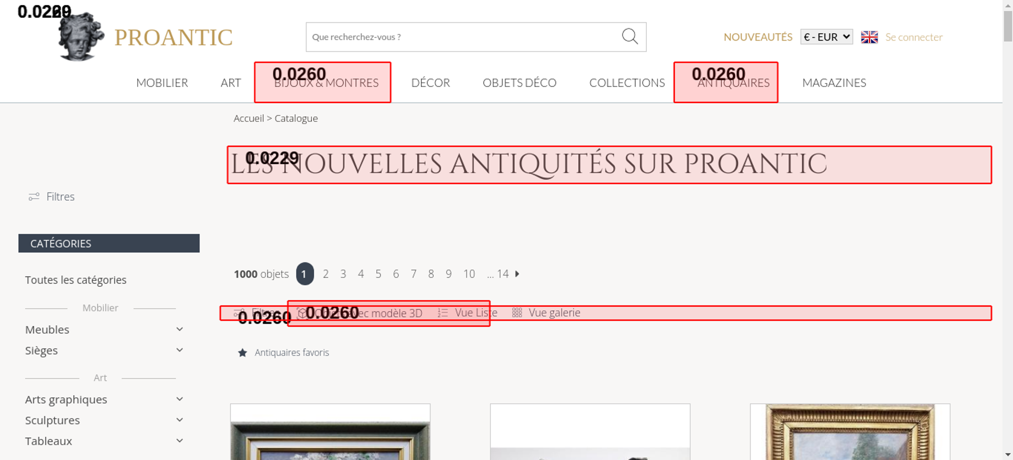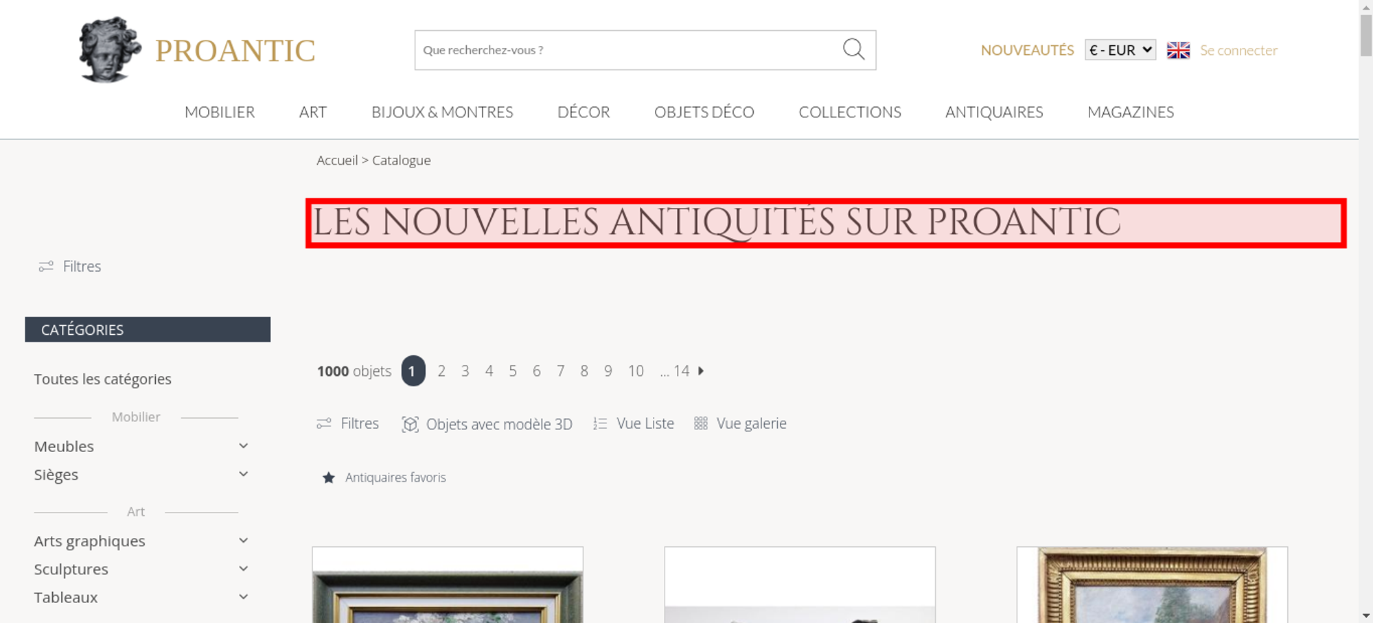 • <h1 class="h1-categorie">Les nouvelles antiquités sur Proantic</h1>
