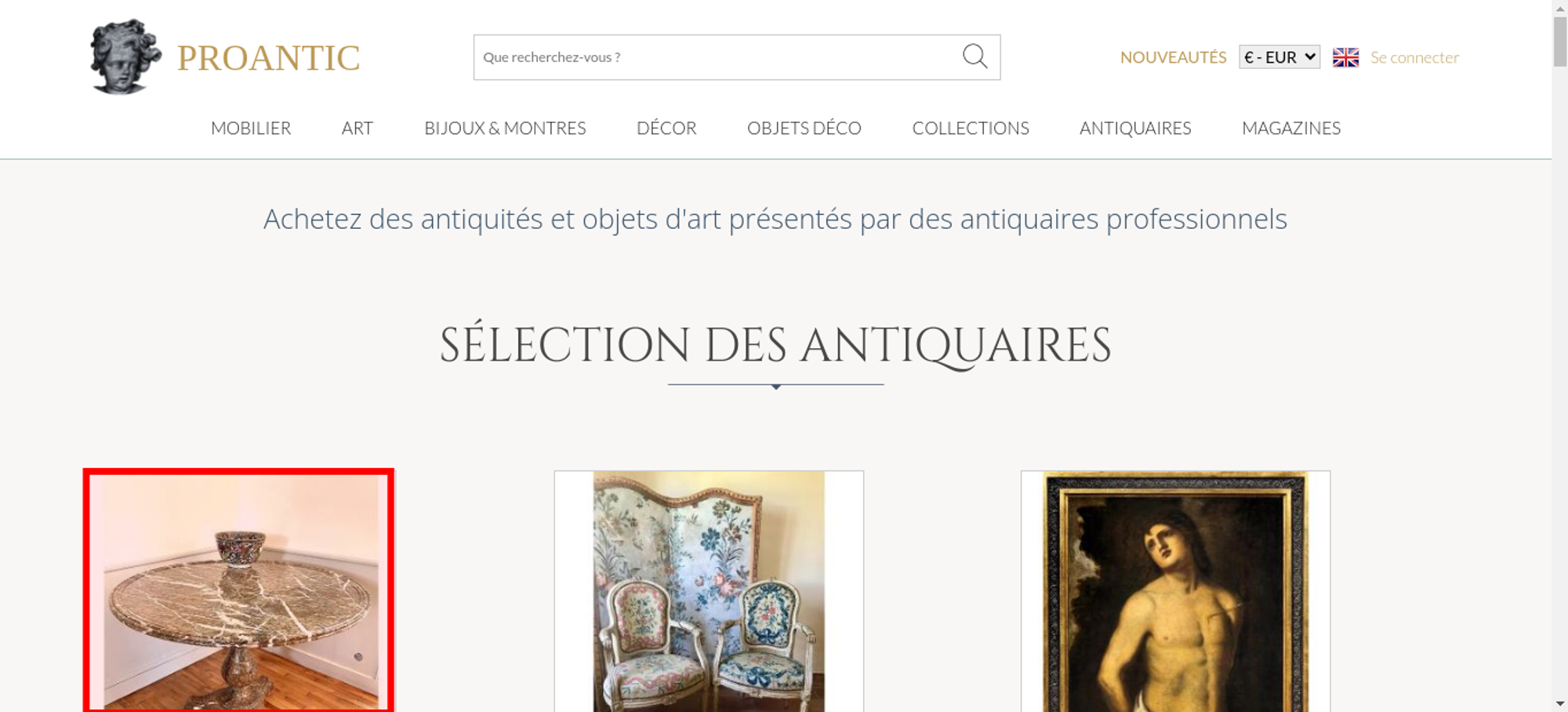 | Title | Proantic: Achetez des antiquités et objets d'art présentés par des ant |