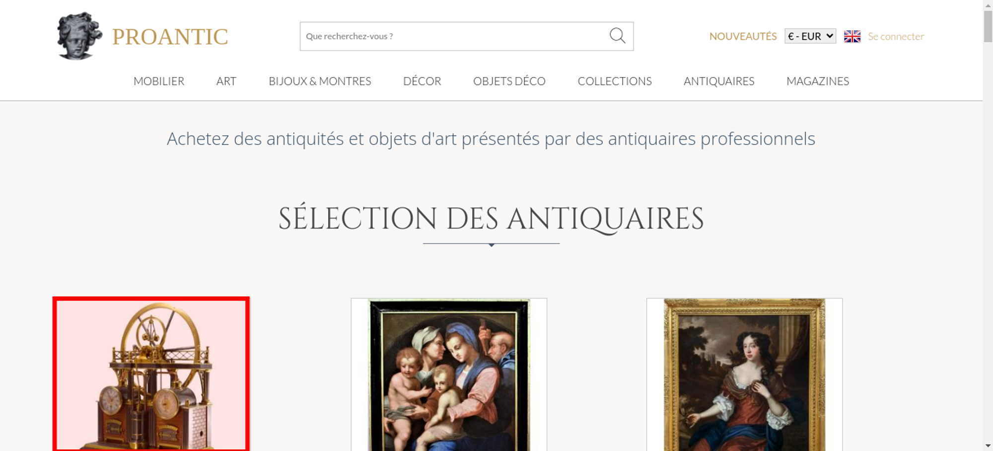 | Title | Proantic: Achetez des antiquités et objets d'art présentés par des ant |