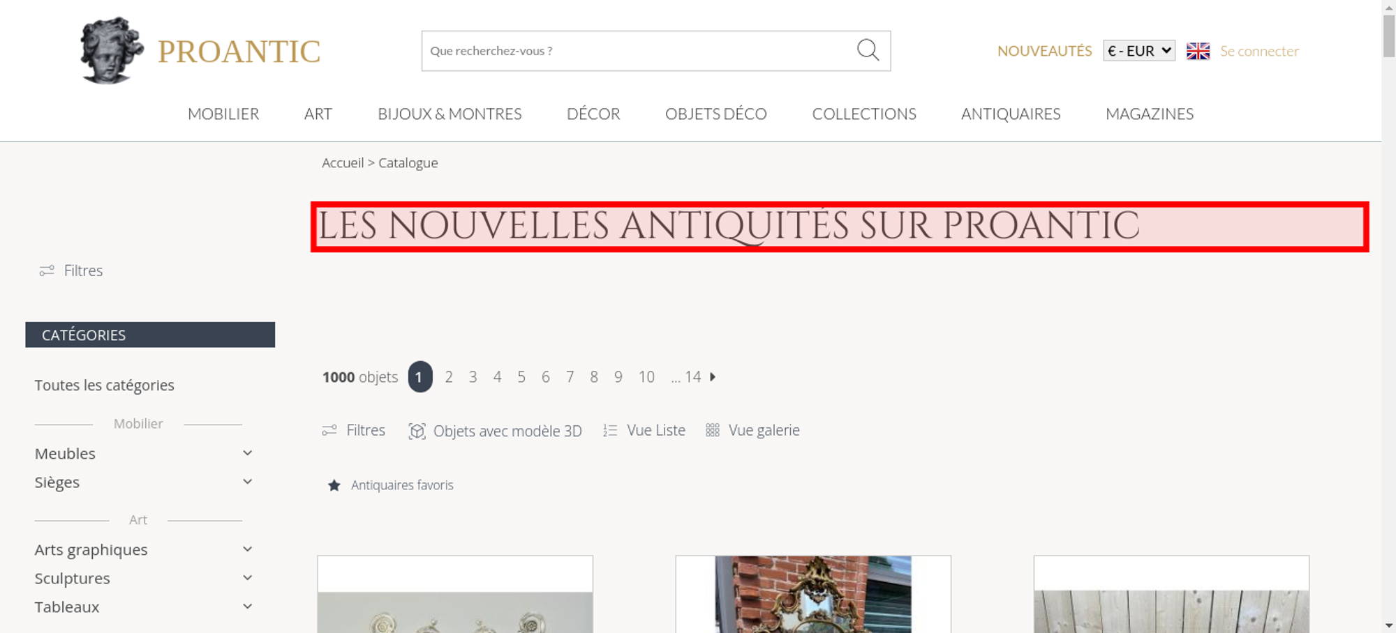 • <h1 class="h1-categorie">Les nouvelles antiquités sur Proantic</h1>