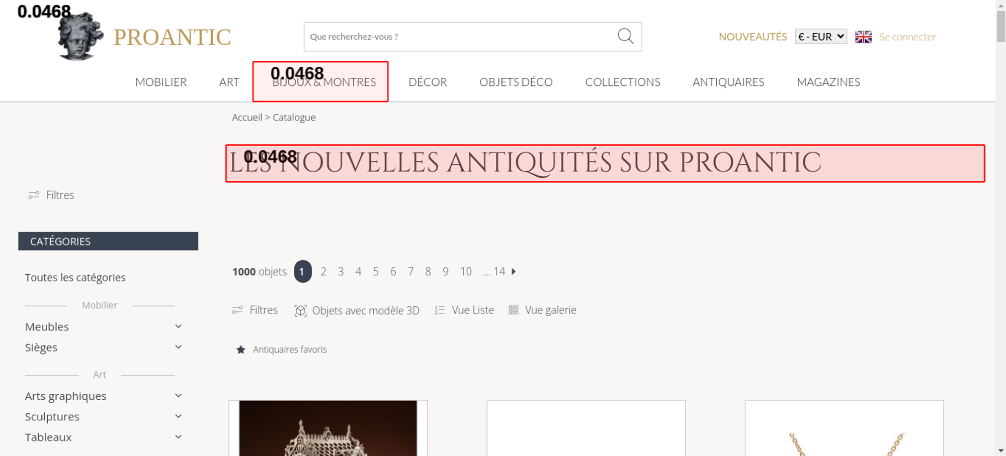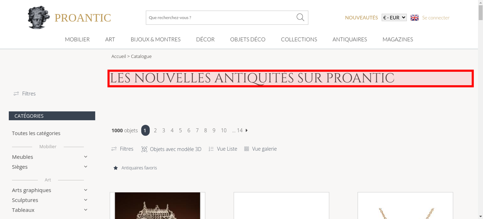 • <h1 class="h1-categorie">Les nouvelles antiquités sur Proantic</h1>