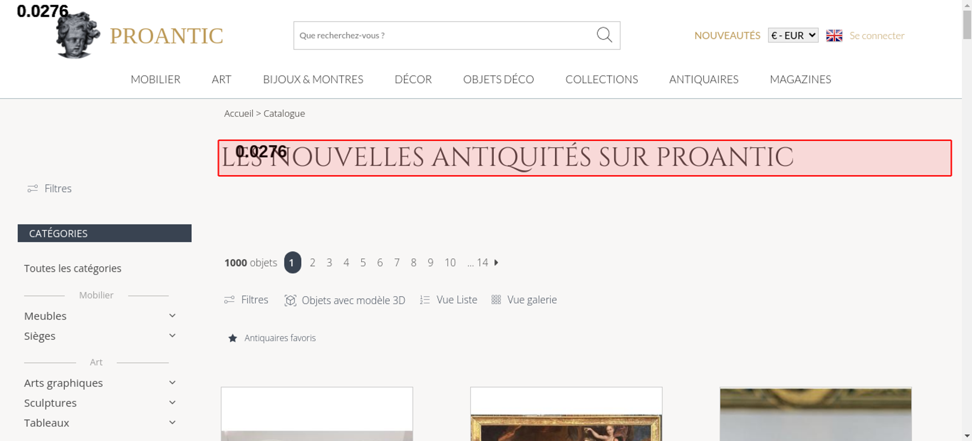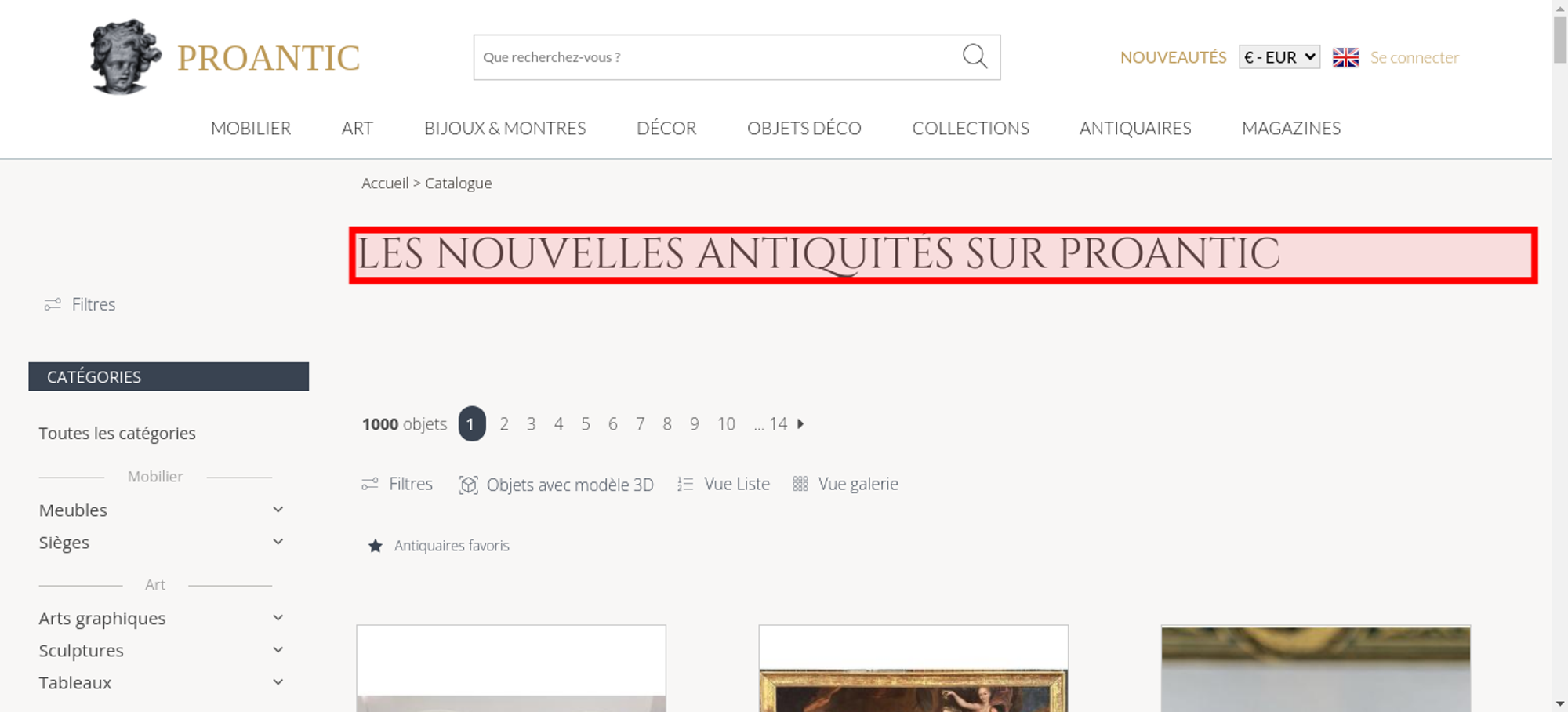 • <h1 class="h1-categorie">Les nouvelles antiquités sur Proantic</h1>