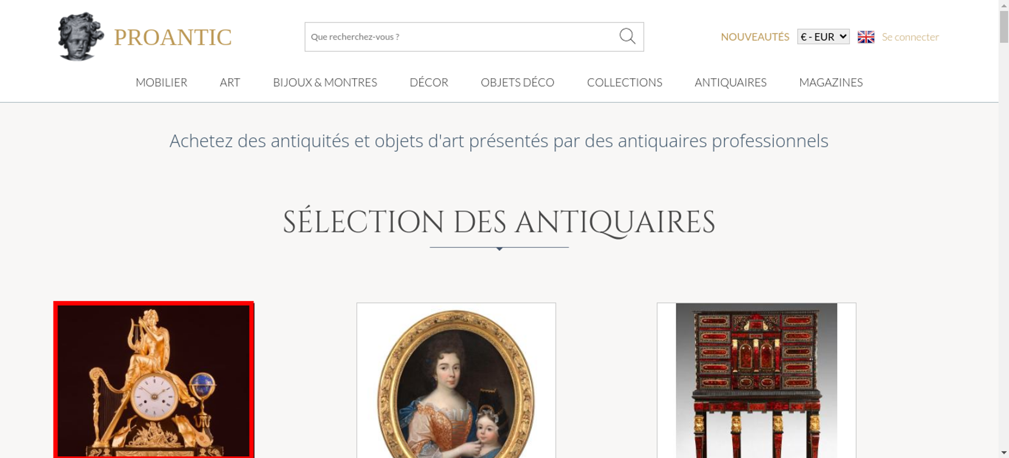 | Title | Proantic: Achetez des antiquités et objets d'art présentés par des ant |