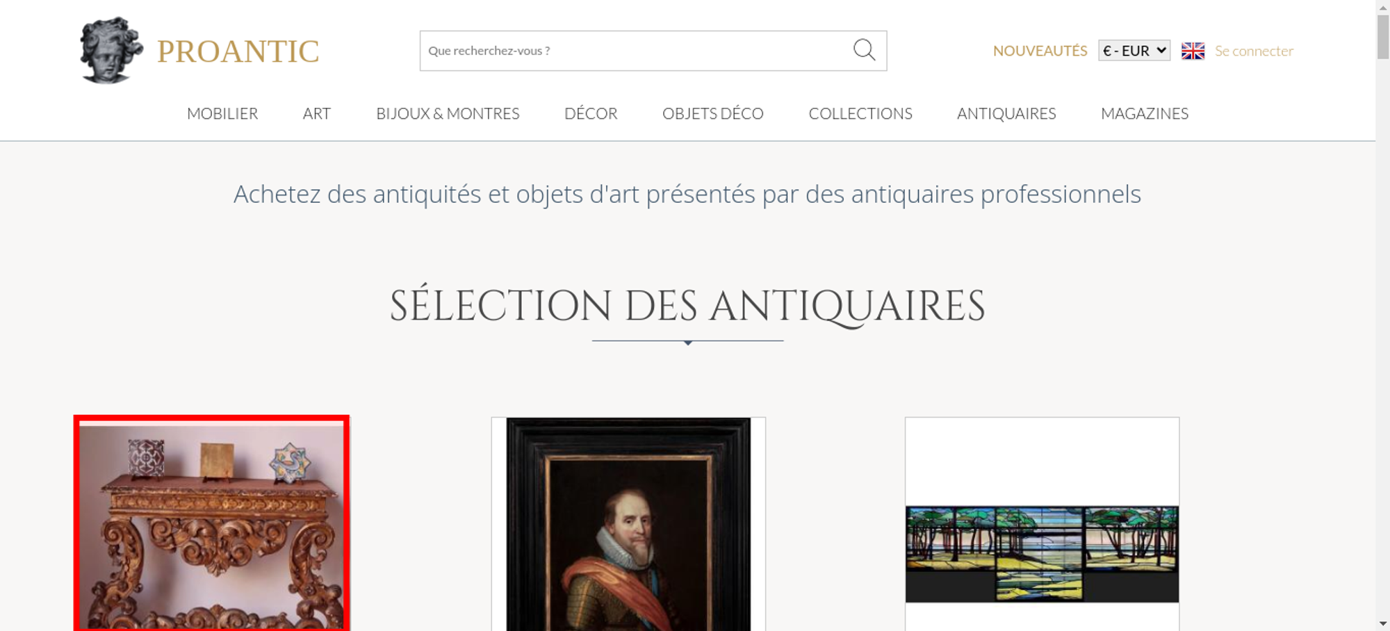 | Title | Proantic: Achetez des antiquités et objets d'art présentés par des ant |