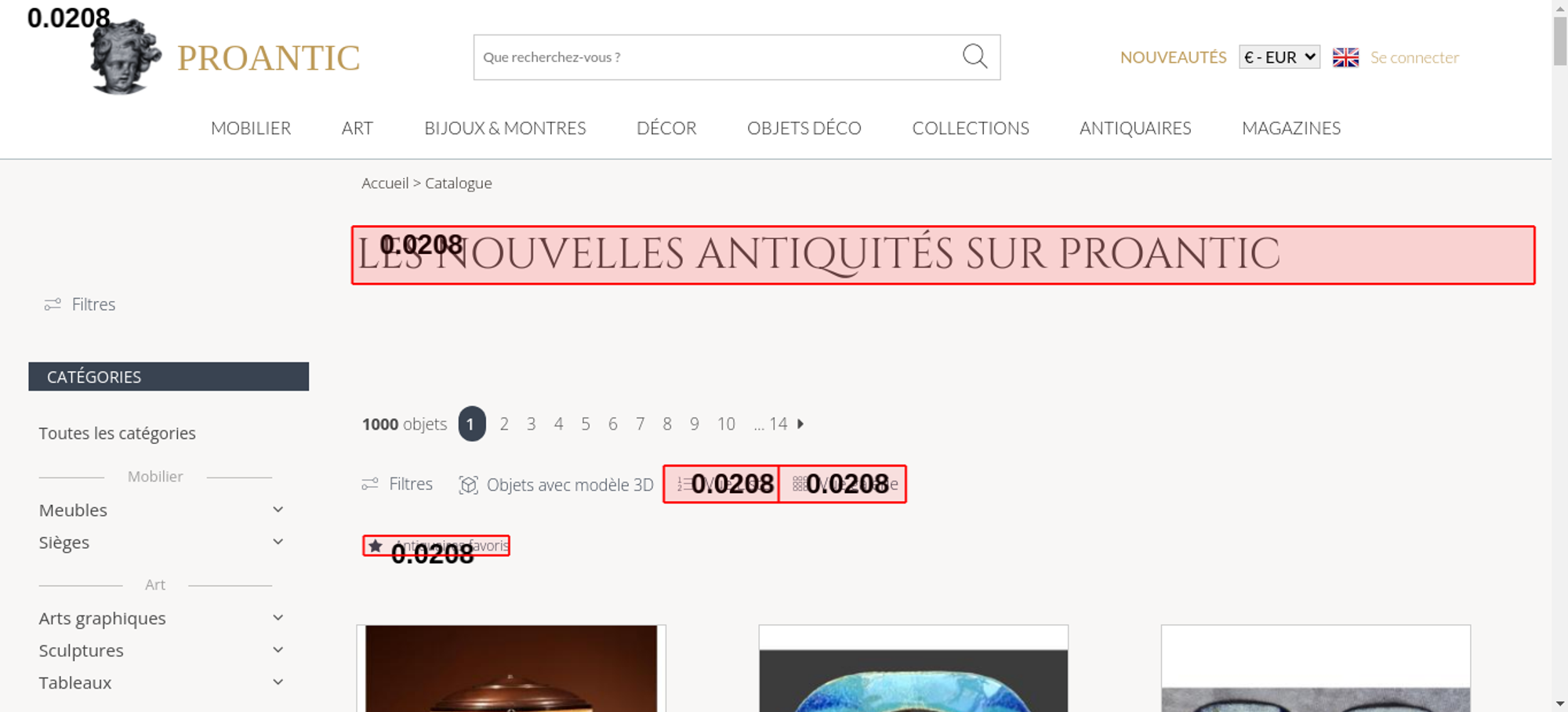 • <h1 class="h1-categorie">Les nouvelles antiquités sur Proantic</h1>