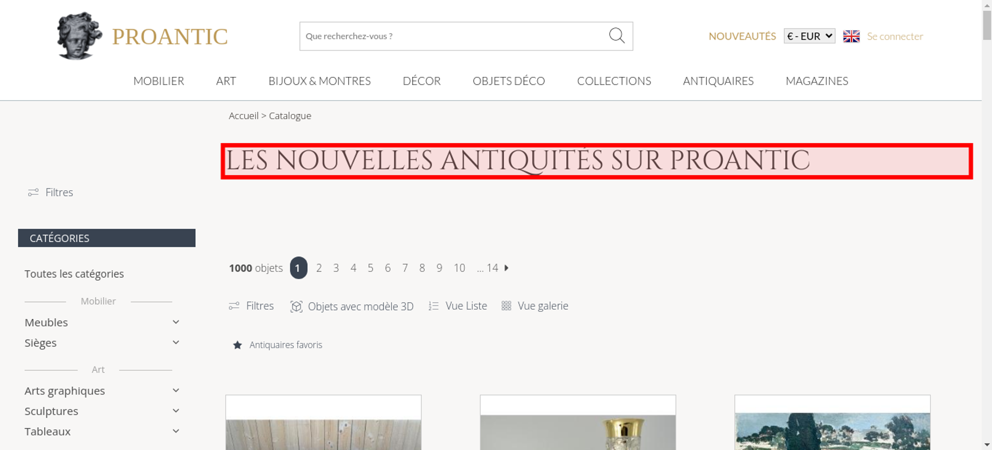 • <h1 class="h1-categorie">Les nouvelles antiquités sur Proantic</h1>