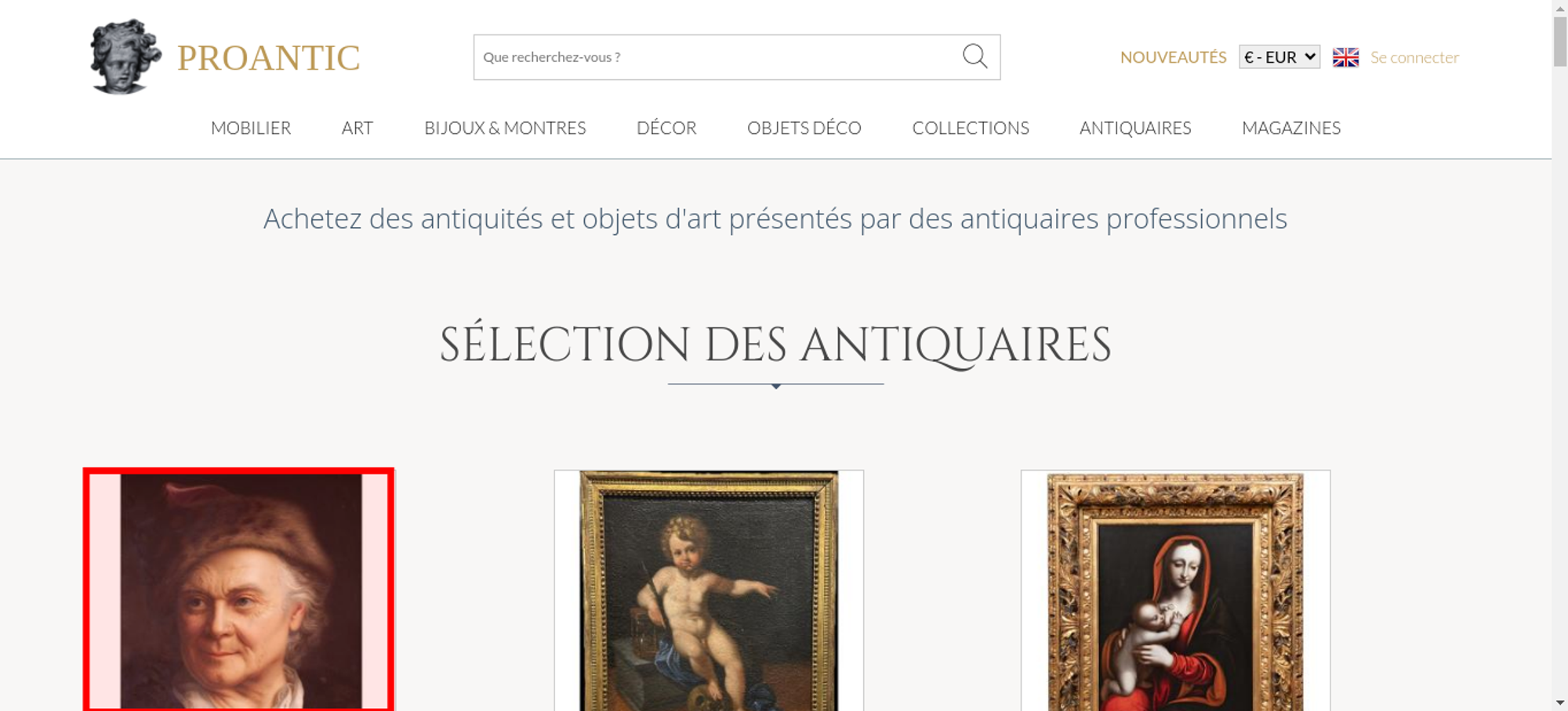 • <a class="nav-menu-hover-a" href="https://www.proantic.com/antiquites-nouveautes" style="padding:7px 0;font-family: 'Lato', serif; color: #BC9956;text-transform: uppercase;margin-bottom:0">nouveautés</a>
