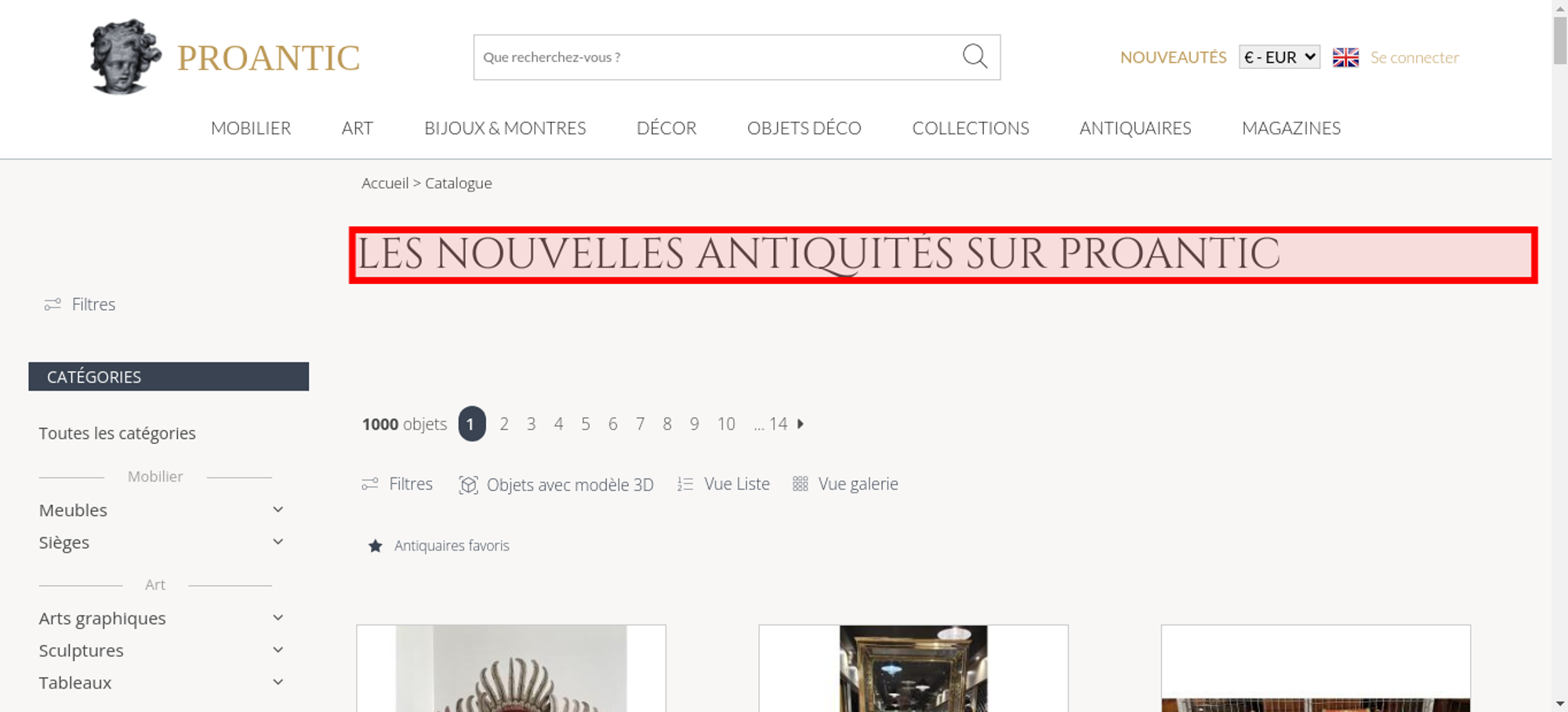 • <h1 class="h1-categorie">Les nouvelles antiquités sur Proantic</h1>