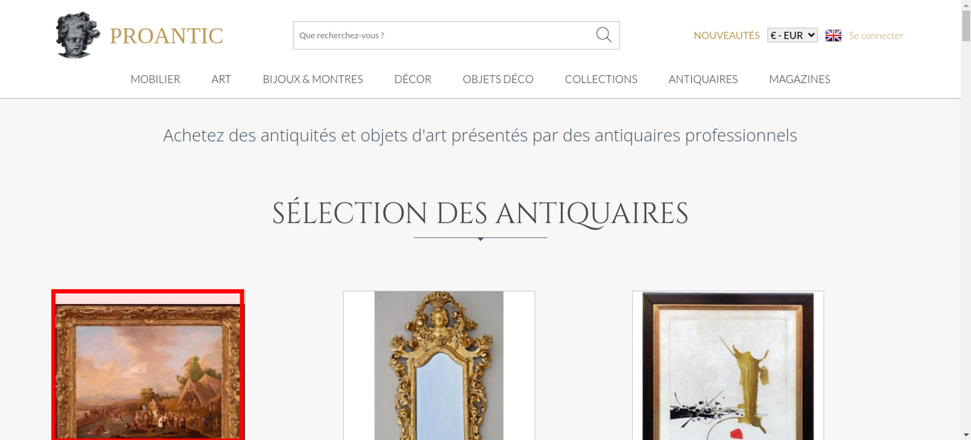 • <a class="nav-menu-hover-a" href="https://www.proantic.com/antiquites-nouveautes" style="padding:7px 0;font-family: 'Lato', serif; color: #BC9956;text-transform: uppercase;margin-bottom:0">nouveautés</a>