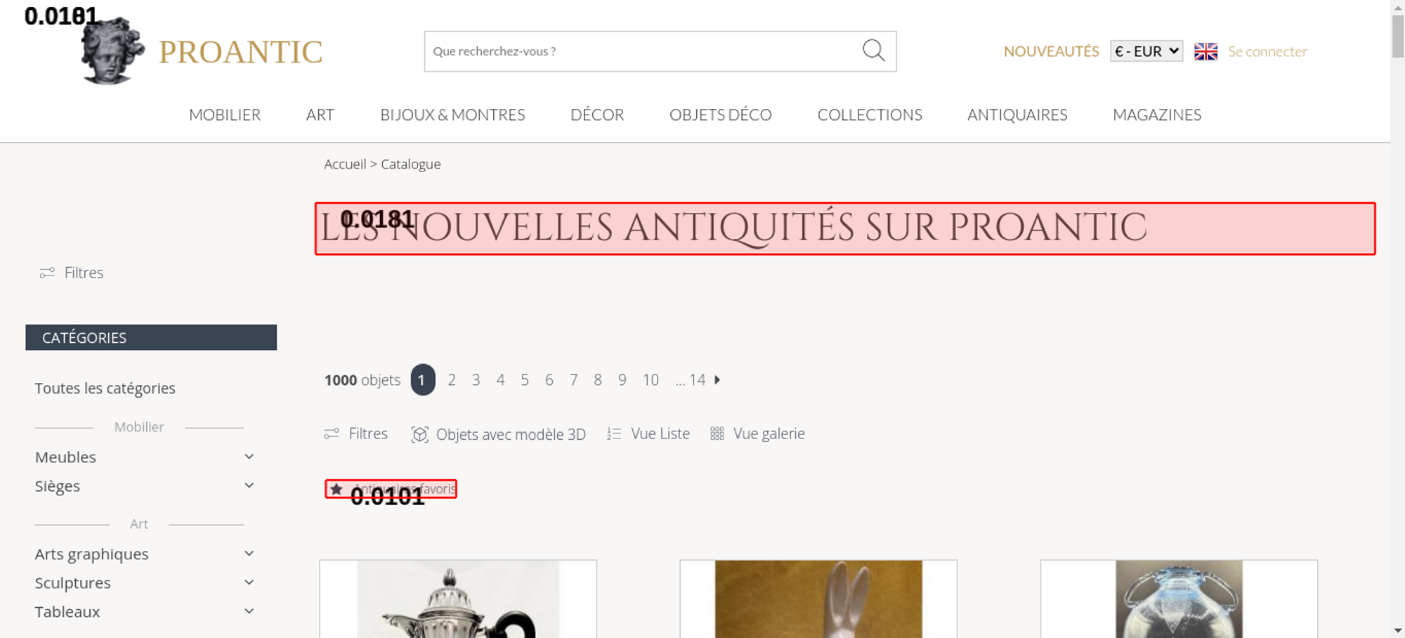 • <h1 class="h1-categorie">Les nouvelles antiquités sur Proantic</h1>