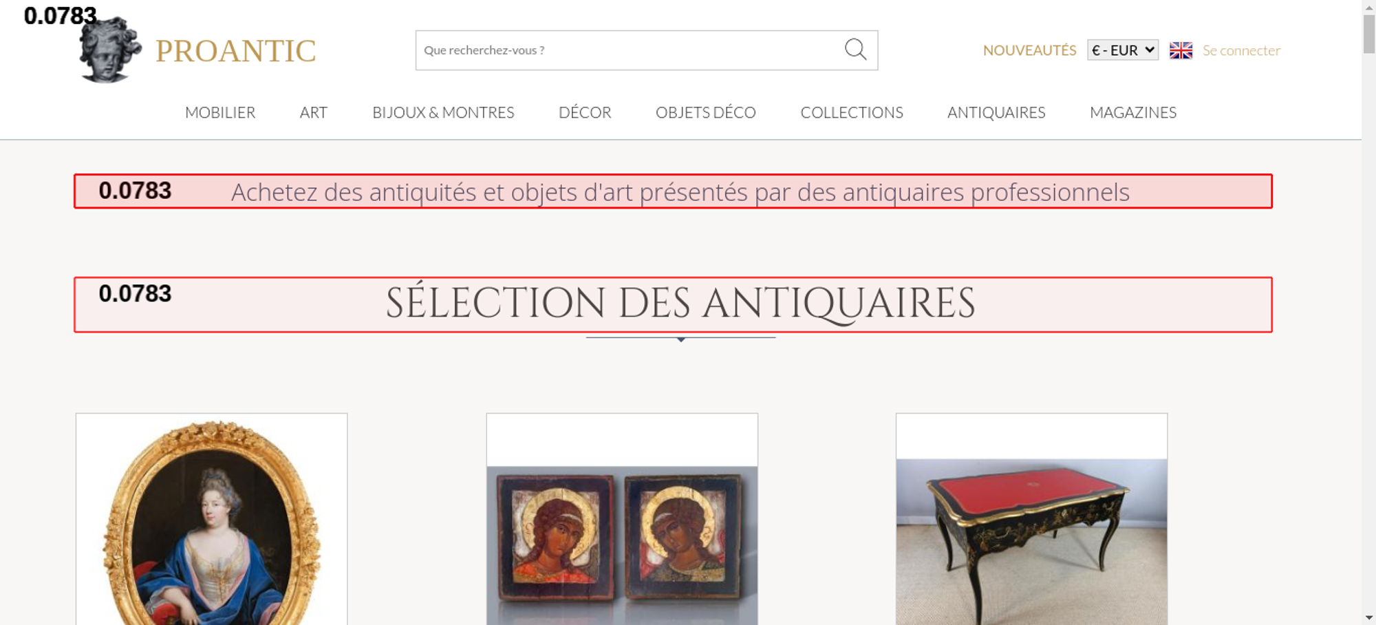 | Offenders: https://www.proantic.com/css/A.googlefonts.css,,q20251213034023+normalize_minify...cf.argL22mL8H.css https://www.proantic.com/css/A.sweetalert2-v1-2.css+carrousel-09.css,,q202512130...cf.Rz1MDGzIXY.css https://www.proantic.com/css/A.light.min.css.pagespeed.cf.fTn3z4osB6.css https://www.proantic.com/css/A.proantic.webflow.024.css,q20251213034023.pagespeed.cf.ecHK1jBoAe.css https://www.proantic.com/ico/logo_proantic_2024.png https://www.proantic.com/ico/englishflag.png https://www.proantic.com/ico/33flag20px.jpg https://www.proantic.com/ico/44flag20px.png https://www.proantic.com/ico/39flag20px.jpg https://www.proantic.com/ico/line.png https://www.proantic.com/ico/facebook_sm.png https://www.proantic.com/ico/pinterest_sm.png https://www.proantic.com/js/sweetalert2.js https://www.proantic.com/ico/INSTAGRAM-LOGO-SM.png https://www.proantic.com/ico/logo_proantic4a_sm_33.png https://www.googletagmanager.com/gtag/js?id=G-YP51KSLLWR https://www.proantic.com/galerie/titanfineart/img/small/1636825-main-68f6b46679394.jpg https://www.proantic.com/galerie/bilsceramiques/img/small/1667320-main-6935c2181d5af.jpg https://www.proantic.com/galerie/adrienvega/img/small/1665292-main-6931dfd8e26f4.jpg https://www.proantic.com/galerie/la-valise-arlesienne/img/small/1668658-main-6938697358402.jpg https://www.proantic.com/galerie/antichita-ischia-romano/img/small/1661215-main-6929c0377795f.jpg https://www.proantic.com/galerie/violondingres/img/small/1653409-main-6919df9066e8a.jpg https://www.proantic.com/galerie/noblessedesgrandssiecles/img/small/1549989-main-6839ce66ab2cb.jpg https://www.proantic.com/galerie/antiquitespromenade/img/small/1656722-main-6920a36bc59eb.jpg https://www.proantic.com/galerie/bilsceramiques/img/small/1671064-main-693c5a9e26234.jpg https://www.proantic.com/galerie/phc/img/small/1633930-main-68f0c35d580f8.jpg https://www.proantic.com/galerie/phc/img/small/1545475-main-693ee09eb9856.jpg https://www.proantic.com/galerie/adrienvega/img/small/1518348-main-67e7212c0b04e.jpg https://www.proantic.com/galerie/violondingres/img/small/1653396-main-6919d94e9719a.jpg https://www.proantic.com/galerie/bilsceramiques/img/small/1668078-main-6937cc6d59e16.jpg https://www.proantic.com/galerie/philippecote/img/small/1653945-main-691b35853be80.jpg https://www.proantic.com/galerie/postaire-sebastien/img/small/1618631-main-68fd3bfcd5229.jpg https://www.proantic.com/galerie/laurybailly/img/small/1338284-main-66470c5a3a196.jpg https://www.proantic.com/galerie/mldantiquites/indexImage.jpg https://www.proantic.com/css/jquery-ui-1_10_3-minify.css https://static.doubleclick.net/instream/ad_status.js https://i.ytimg.com/vi/UbDi7Z6y4lA/sddefault.jpg...4lA/sddefault.jpg https://yt3.ggpht.com/4tWvbLsp8MC-PrLY5MN-RWJuCp7uVsgPLn_rfa0nUsKLD9CqylGq4VWVaJ...c0x00ffffff-no-rj https://www.gstatic.com/cv/js/sender/v1/cast_sender.js https://www.proantic.com/ico/proantic_ico_new_6.png https://www.gstatic.com/eureka/clank/132/cast_sender.js |