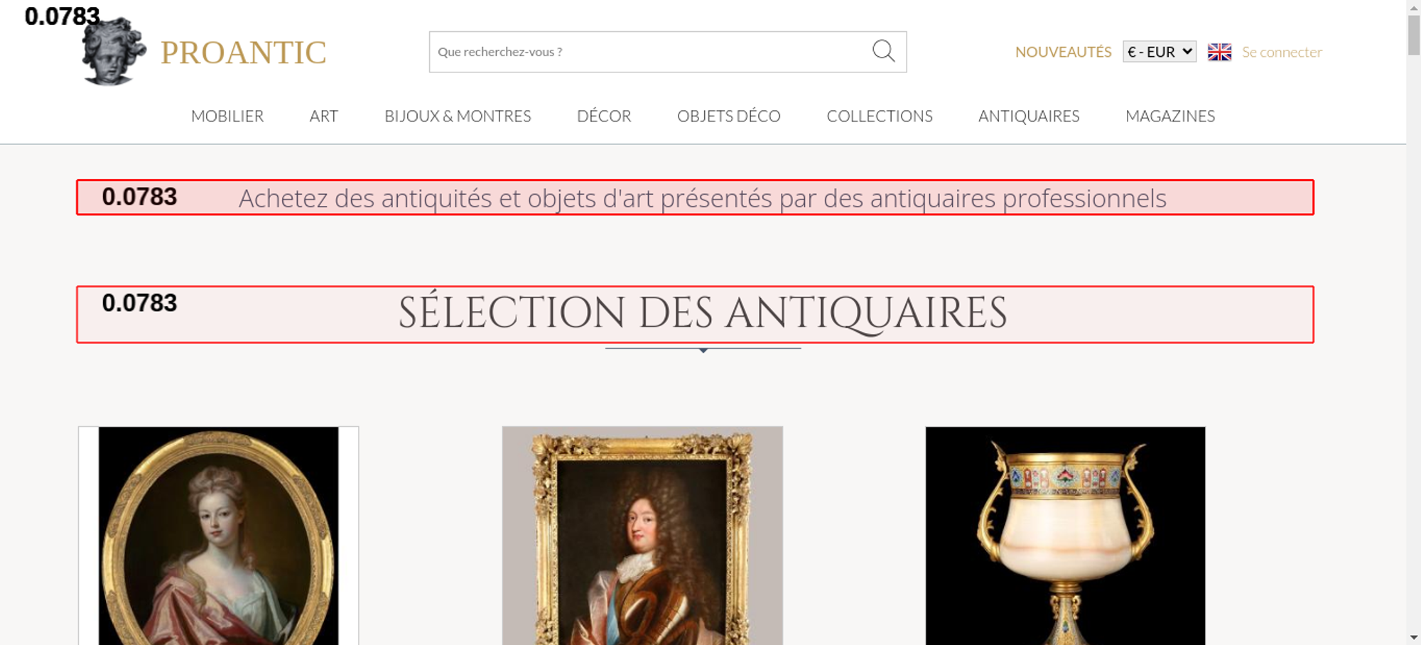 | Offenders: https://www.proantic.com/css/A.googlefonts.css,,q20251213034023+normalize_minify...cf.argL22mL8H.css https://www.proantic.com/css/A.sweetalert2-v1-2.css+carrousel-09.css,,q202512130...cf.Rz1MDGzIXY.css https://www.proantic.com/css/A.light.min.css.pagespeed.cf.fTn3z4osB6.css https://www.proantic.com/css/A.proantic.webflow.024.css,q20251213034023.pagespeed.cf.ecHK1jBoAe.css https://www.proantic.com/ico/logo_proantic_2024.png https://www.proantic.com/ico/englishflag.png https://www.proantic.com/ico/33flag20px.jpg https://www.proantic.com/ico/44flag20px.png https://www.proantic.com/ico/39flag20px.jpg https://www.proantic.com/js/sweetalert2.js https://www.proantic.com/ico/line.png https://www.proantic.com/ico/facebook_sm.png https://www.proantic.com/ico/pinterest_sm.png https://www.proantic.com/ico/INSTAGRAM-LOGO-SM.png https://www.proantic.com/ico/logo_proantic4a_sm_33.png https://www.googletagmanager.com/gtag/js?id=G-YP51KSLLWR https://www.proantic.com/galerie/adrienvega/img/small/1623172-main-68d82a4ae0284.jpg https://www.proantic.com/galerie/adrienvega/img/small/1518348-main-67e7212c0b04e.jpg https://www.proantic.com/galerie/phc/img/small/1633930-main-68f0c35d580f8.jpg https://www.proantic.com/galerie/arte-collection/img/small/1612788-main-68c12983e8ad0.jpg https://www.proantic.com/galerie/adrienvega/img/small/1665292-main-6931dfd8e26f4.jpg https://www.proantic.com/galerie/lestresorsdegamaliel/img/small/1400051-main-66e33c8391ea2.jpg https://www.proantic.com/galerie/postaire-sebastien/img/small/1654727-main-691ce9b4060e3.jpg https://www.proantic.com/galerie/antichita-ischia-romano/img/small/1661215-main-6929c0377795f.jpg https://www.proantic.com/galerie/antiquitespromenade/img/small/1656722-main-6920a36bc59eb.jpg https://www.proantic.com/galerie/philippecote/img/small/1653945-main-691b35853be80.jpg https://www.proantic.com/galerie/bilsceramiques/img/small/1671064-main-693c5a9e26234.jpg https://www.proantic.com/galerie/antichita-castelbarco/img/small/1667453-main-69368cd3b5838.jpg https://www.proantic.com/galerie/violondingres/img/small/1653396-main-6919d94e9719a.jpg https://www.proantic.com/galerie/bilsceramiques/img/small/1667320-main-6935c2181d5af.jpg https://www.proantic.com/galerie/titanfineart/img/small/1636825-main-68f6b46679394.jpg https://www.proantic.com/galerie/phc/img/small/1545475-main-693ee09eb9856.jpg https://www.proantic.com/galerie/bilsceramiques/img/small/1668078-main-6937cc6d59e16.jpg https://www.proantic.com/galerie/noblessedesgrandssiecles/img/small/1549989-main-6839ce66ab2cb.jpg https://www.proantic.com/galerie/la-valise-arlesienne/img/small/1668658-main-6938697358402.jpg https://www.proantic.com/galerie/serignan/img/small/1671419-main-693d76d8a132c.jpg https://www.proantic.com/galerie/galeriefc/img/small/1662934-main-692dcaaf92099.jpg https://www.proantic.com/galerie/mldantiquites/indexImage.jpg https://www.proantic.com/css/jquery-ui-1_10_3-minify.css https://static.doubleclick.net/instream/ad_status.js https://i.ytimg.com/vi/UbDi7Z6y4lA/sddefault.jpg...4lA/sddefault.jpg https://yt3.ggpht.com/4tWvbLsp8MC-PrLY5MN-RWJuCp7uVsgPLn_rfa0nUsKLD9CqylGq4VWVaJ...c0x00ffffff-no-rj https://www.gstatic.com/cv/js/sender/v1/cast_sender.js https://www.proantic.com/ico/proantic_ico_new_6.png https://www.gstatic.com/eureka/clank/132/cast_sender.js |