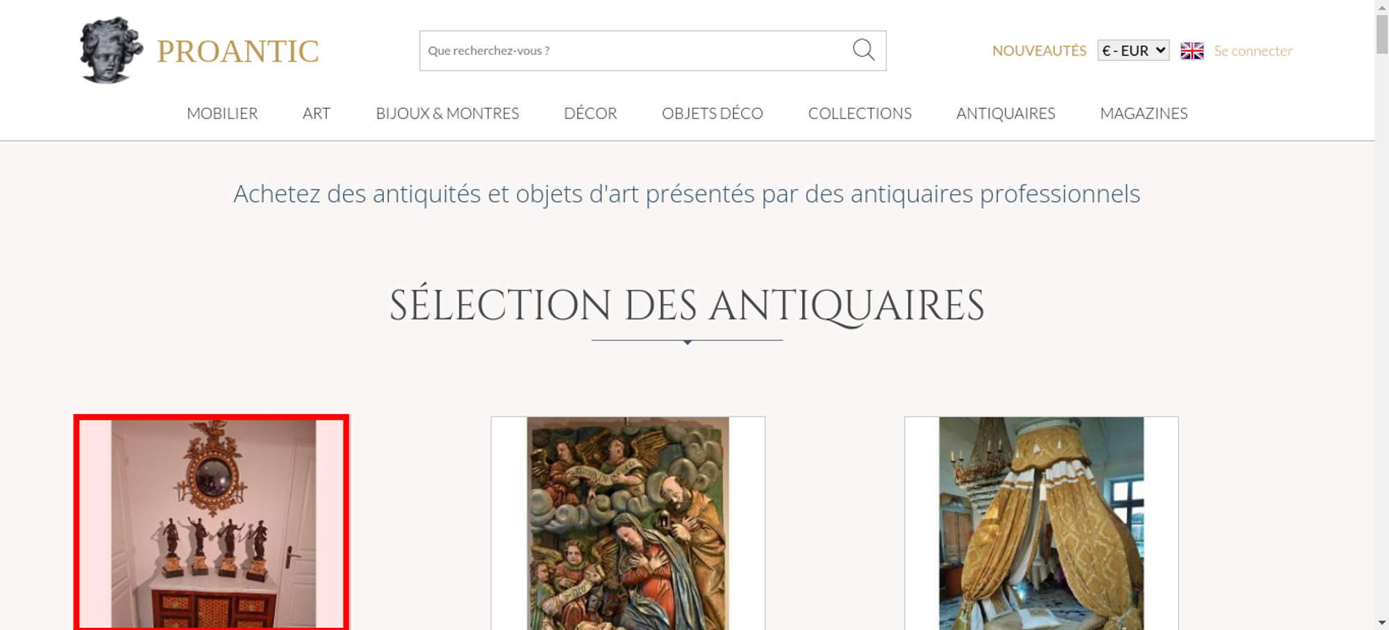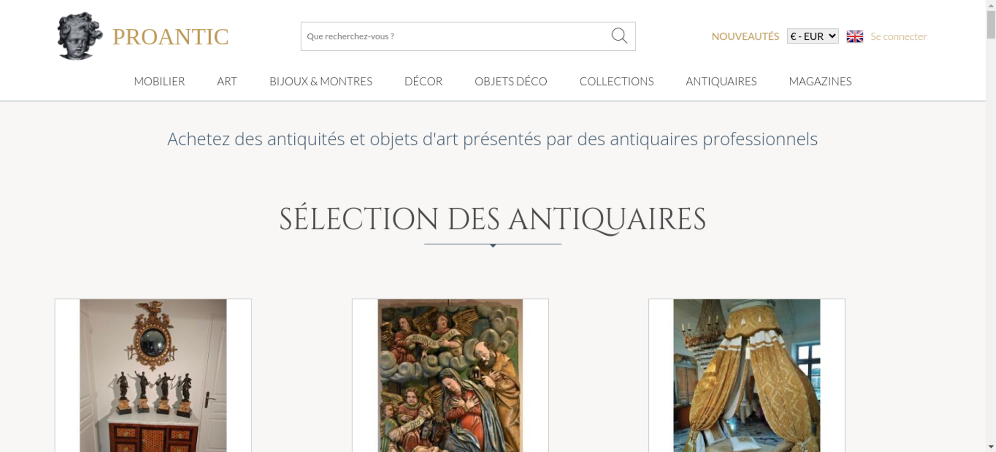 • <a class="nav-menu-hover-a" href="https://www.proantic.com/antiquites-nouveautes" style="padding:7px 0;font-family: 'Lato', serif; color: #BC9956;text-transform: uppercase;margin-bottom:0">nouveautés</a>