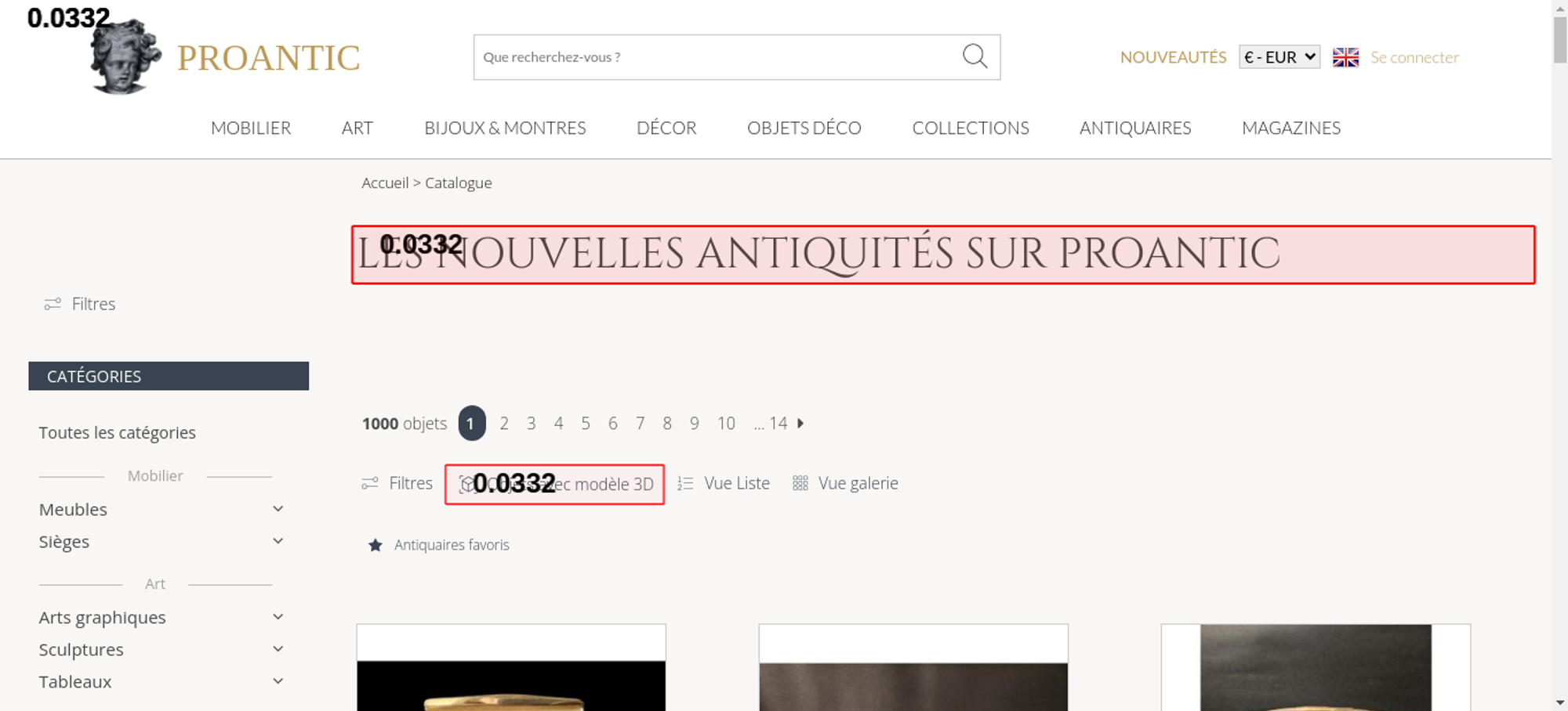 • <h1 class="h1-categorie">Les nouvelles antiquités sur Proantic</h1>