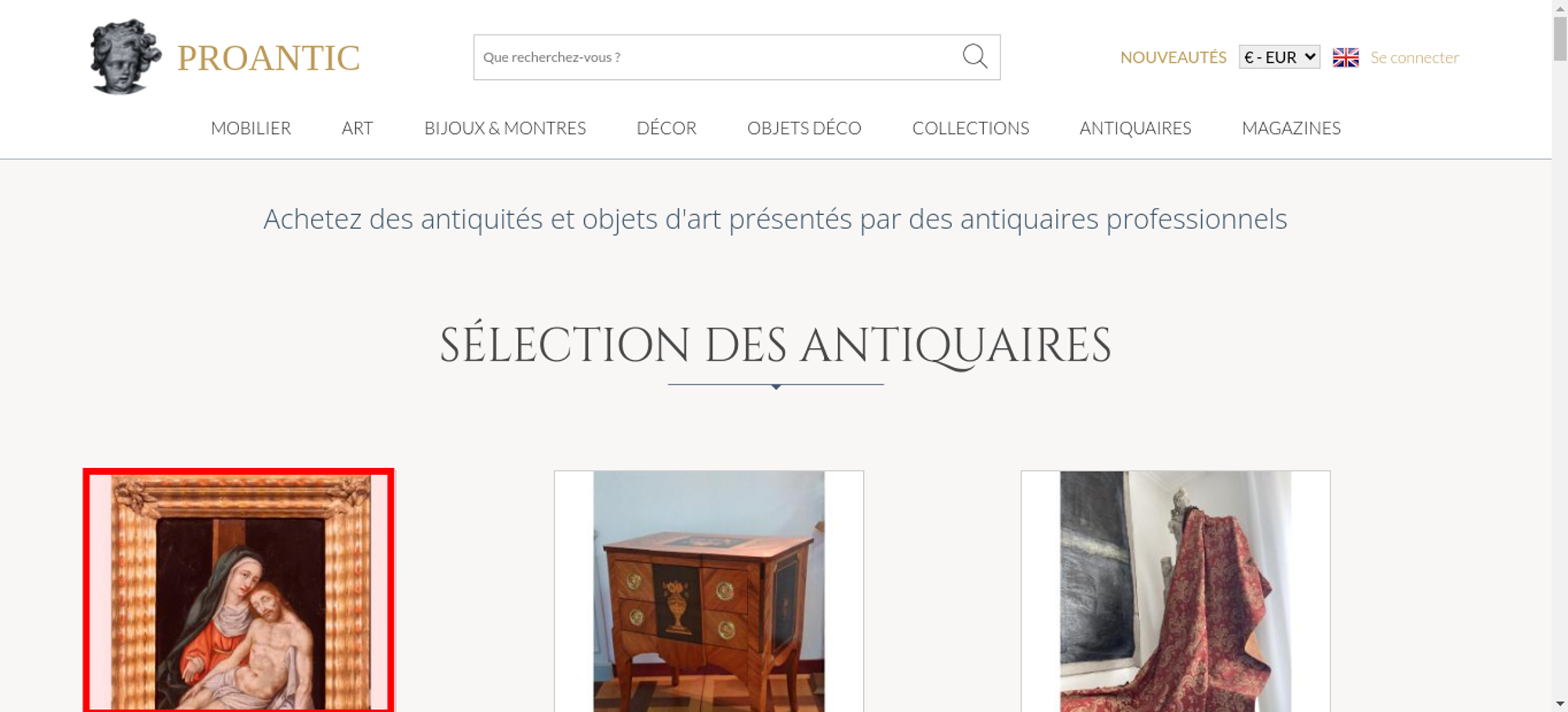 • <a class="nav-menu-hover-a" href="https://www.proantic.com/antiquites-nouveautes" style="padding:7px 0;font-family: 'Lato', serif; color: #BC9956;text-transform: uppercase;margin-bottom:0">nouveautés</a>