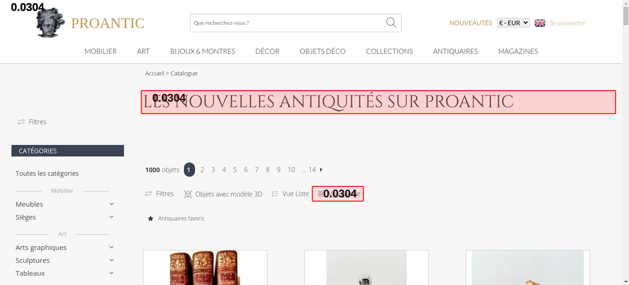 • <h1 class="h1-categorie">Les nouvelles antiquités sur Proantic</h1>