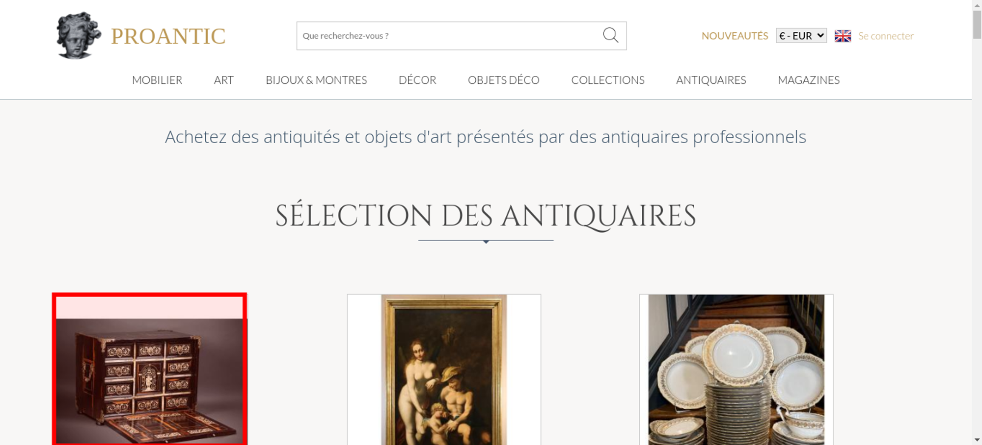 • <a class="nav-menu-hover-a" href="https://www.proantic.com/antiquites-nouveautes" style="padding:7px 0;font-family: 'Lato', serif; color: #BC9956;text-transform: uppercase;margin-bottom:0">nouveautés</a>