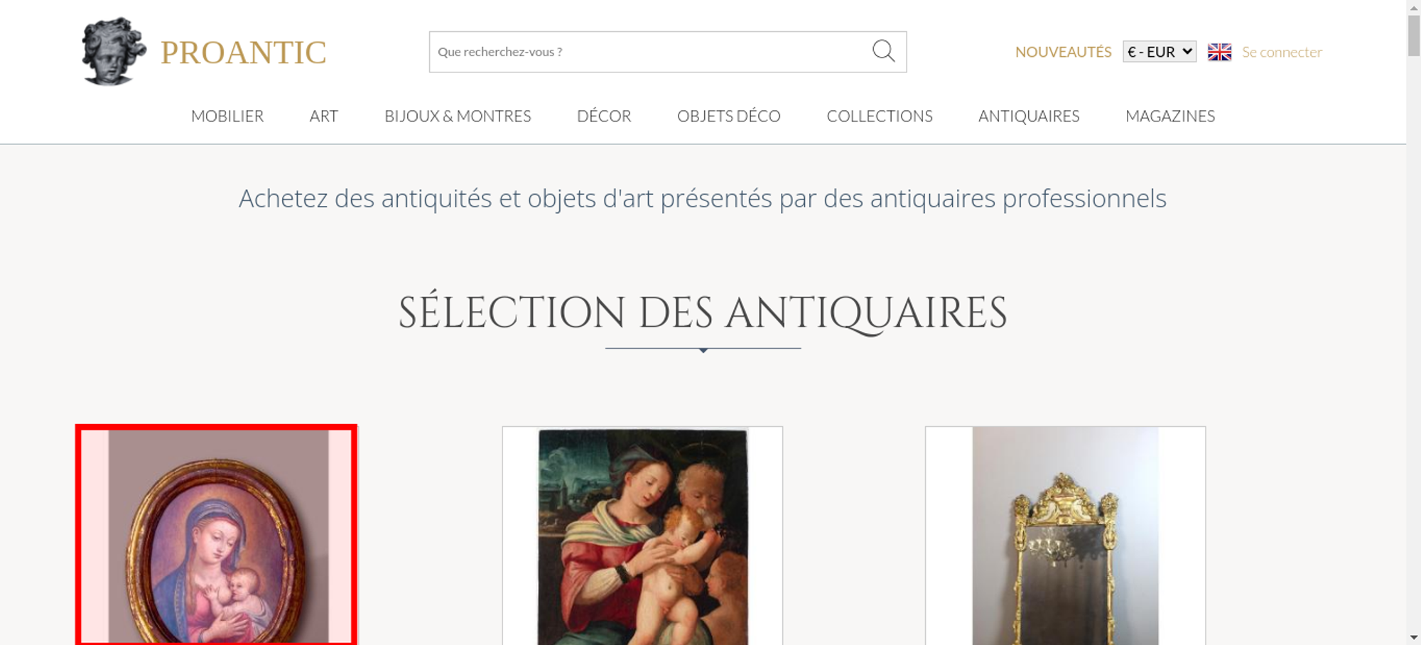 | Offenders: https://www.proantic.com/css/A.googlefonts.css,,qtimestampcssproantic+normalize_...cf.argL22mL8H.css https://www.proantic.com/css/A.sweetalert2-v1-2.css+carrousel-09.css,,qtimestamp...cf.59P_56I8JF.css https://www.proantic.com/css/A.sharp-solid.min.css+light.min.css,Mcc.4mM6ZiXh03....cf.s9J1L34NK4.css https://www.proantic.com/css/A.proantic.webflow.024.css,qtimestampcssproantic.pa...cf.ecHK1jBoAe.css https://www.proantic.com/ico/logo_proantic_2024.png https://www.proantic.com/ico/englishflag.png https://www.proantic.com/ico/33flag20px.jpg https://www.proantic.com/ico/44flag20px.png https://www.proantic.com/ico/39flag20px.jpg https://www.proantic.com/ico/line.png https://www.proantic.com/ico/facebook_sm.png https://www.proantic.com/js/sweetalert2.js https://www.proantic.com/ico/pinterest_sm.png https://www.proantic.com/ico/INSTAGRAM-LOGO-SM.png https://www.proantic.com/ico/logo_proantic4a_sm_33.png https://www.googletagmanager.com/gtag/js?id=G-YP51KSLLWR https://www.proantic.com/galerie/arte-collection/img/small/1643718-main-6980c2fb293a8.jpg https://www.proantic.com/galerie/valiani-antiques/img/small/1679723-main-6951115d4f6e7.jpg https://www.proantic.com/galerie/philippecote/img/small/1681689-main-6957feb8a0fe5.jpg https://www.proantic.com/galerie/rose-galerie/img/small/1604672-main-697f8a04f06f7.jpg https://www.proantic.com/galerie/antichita-castelbarco/img/small/1693465-main-69732f22db083.jpg https://www.proantic.com/galerie/philippecote/img/small/1288328-main-65d9cbf90d1c5.jpg https://www.proantic.com/galerie/valiani-antiques/img/small/1678118-main-694ad08509a4e.jpg https://www.proantic.com/galerie/phc/img/small/1579866-main-686af9ce3eee5.jpg https://www.proantic.com/galerie/apollon-art-and-antiques/img/small/1685538-main-6980cc91e8a32.jpg https://www.proantic.com/galerie/philippecote/img/small/1695234-main-69773b4f24e23.jpg https://www.proantic.com/galerie/apollon-art-and-antiques/img/small/1666729-main-693466e6f1851.jpg https://www.proantic.com/galerie/edithdavidson/img/small/1672943-main-6940713a75d98.jpg https://www.proantic.com/galerie/antichita-castelbarco/img/small/1695191-main-6977305bc13d5.jpg https://www.proantic.com/galerie/rose-galerie/img/small/1667148-main-69359093cabe1.jpg https://www.proantic.com/galerie/laurybailly/img/small/1696284-main-6978e92743c15.jpg https://www.proantic.com/galerie/rose-galerie/img/small/1698071-main-697cb5a1f13cf.jpg https://www.proantic.com/galerie/lestresorsdegamaliel/img/small/1653332-main-6919bb5136672.jpg https://www.proantic.com/galerie/phc/img/small/1698375-main-697cf19e41f33.jpg https://www.proantic.com/galerie/galeriefc/284-6904e2f987db6.jpg https://www.proantic.com/css/jquery-ui-1_10_3-minify.css https://static.doubleclick.net/instream/ad_status.js https://i.ytimg.com/vi/UbDi7Z6y4lA/sddefault.jpg...4lA/sddefault.jpg https://yt3.ggpht.com/4tWvbLsp8MC-PrLY5MN-RWJuCp7uVsgPLn_rfa0nUsKLD9CqylGq4VWVaJ...c0x00ffffff-no-rj https://www.gstatic.com/cv/js/sender/v1/cast_sender.js https://www.proantic.com/ico/proantic_ico_new_6.png https://www.gstatic.com/eureka/clank/132/cast_sender.js |
