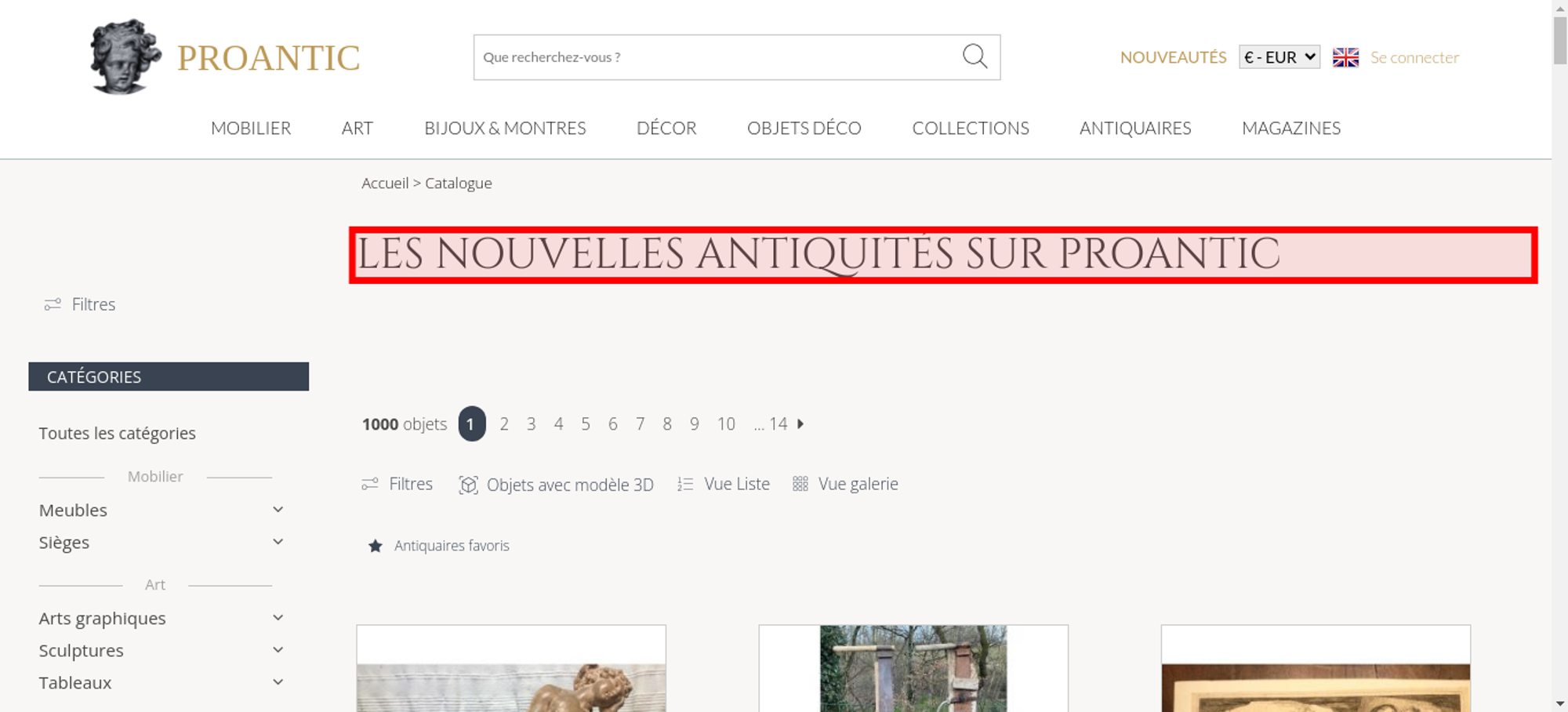 • <h1 class="h1-categorie">Les nouvelles antiquités sur Proantic</h1>