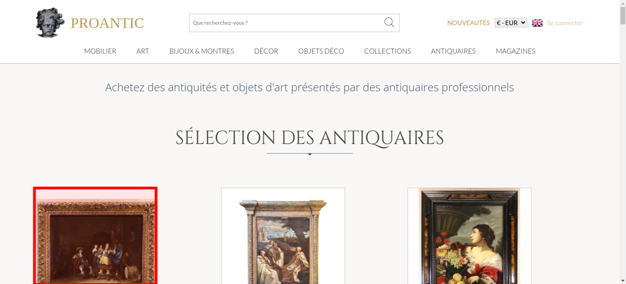 | Offenders: https://www.proantic.com/css/A.googlefonts.css,,qtimestampcssproantic+normalize_...cf.argL22mL8H.css https://www.proantic.com/css/A.sweetalert2-v1-2.css+carrousel-09.css,,qtimestamp...cf.59P_56I8JF.css https://www.proantic.com/css/A.sharp-solid.min.css+light.min.css,Mcc.4mM6ZiXh03....cf.s9J1L34NK4.css https://www.proantic.com/css/A.proantic.webflow.024.css,qtimestampcssproantic.pa...cf.ecHK1jBoAe.css https://www.proantic.com/ico/logo_proantic_2024.png https://www.proantic.com/ico/englishflag.png https://www.proantic.com/ico/33flag20px.jpg https://www.proantic.com/ico/44flag20px.png https://www.proantic.com/ico/39flag20px.jpg https://www.proantic.com/ico/line.png https://www.proantic.com/ico/facebook_sm.png https://www.proantic.com/js/sweetalert2.js https://www.proantic.com/ico/pinterest_sm.png https://www.proantic.com/ico/INSTAGRAM-LOGO-SM.png https://www.proantic.com/ico/logo_proantic4a_sm_33.png https://www.googletagmanager.com/gtag/js?id=G-YP51KSLLWR https://www.proantic.com/galerie/philippecote/img/small/1288328-main-65d9cbf90d1c5.jpg https://www.proantic.com/galerie/lestresorsdegamaliel/img/small/1653332-main-6919bb5136672.jpg https://www.proantic.com/galerie/phc/img/small/1698375-main-697cf19e41f33.jpg https://www.proantic.com/galerie/phc/img/small/1579866-main-686af9ce3eee5.jpg https://www.proantic.com/galerie/antichita-castelbarco/img/small/1693465-main-69732f22db083.jpg https://www.proantic.com/galerie/valiani-antiques/img/small/1678118-main-694ad08509a4e.jpg https://www.proantic.com/galerie/laurybailly/img/small/1186805-main-64f3401e587f2.jpg https://www.proantic.com/galerie/artantiquities/img/small/1692046-main-696fc85d797fc.jpg https://www.proantic.com/galerie/noblessedesgrandssiecles/img/small/1676922-main-69480ae2967b3.jpg https://www.proantic.com/galerie/antichita-castelbarco/img/small/1696604-main-6979dc50c827e.jpg https://www.proantic.com/galerie/rose-galerie/img/small/1604672-main-697f8a04f06f7.jpg https://www.proantic.com/galerie/philippecote/img/small/1695234-main-69773b4f24e23.jpg https://www.proantic.com/galerie/arte-collection/img/small/1643718-main-6980c2fb293a8.jpg https://www.proantic.com/galerie/rose-galerie/img/small/1667148-main-69359093cabe1.jpg https://www.proantic.com/galerie/rose-galerie/img/small/1698071-main-697cb5a1f13cf.jpg https://www.proantic.com/galerie/valiani-antiques/img/small/1679723-main-6951115d4f6e7.jpg https://www.proantic.com/galerie/philippecote/img/small/1681689-main-6957feb8a0fe5.jpg https://www.proantic.com/galerie/apollon-art-and-antiques/img/small/1666729-main-693466e6f1851.jpg https://www.proantic.com/galerie/laurybailly/img/small/1696284-main-6978e92743c15.jpg https://www.proantic.com/galerie/galeriefc/284-6904e2f987db6.jpg https://www.proantic.com/css/jquery-ui-1_10_3-minify.css https://static.doubleclick.net/instream/ad_status.js https://i.ytimg.com/vi/UbDi7Z6y4lA/sddefault.jpg...4lA/sddefault.jpg https://yt3.ggpht.com/4tWvbLsp8MC-PrLY5MN-RWJuCp7uVsgPLn_rfa0nUsKLD9CqylGq4VWVaJ...c0x00ffffff-no-rj https://www.gstatic.com/cv/js/sender/v1/cast_sender.js https://www.gstatic.com/eureka/clank/132/cast_sender.js https://www.proantic.com/ico/proantic_ico_new_6.png |