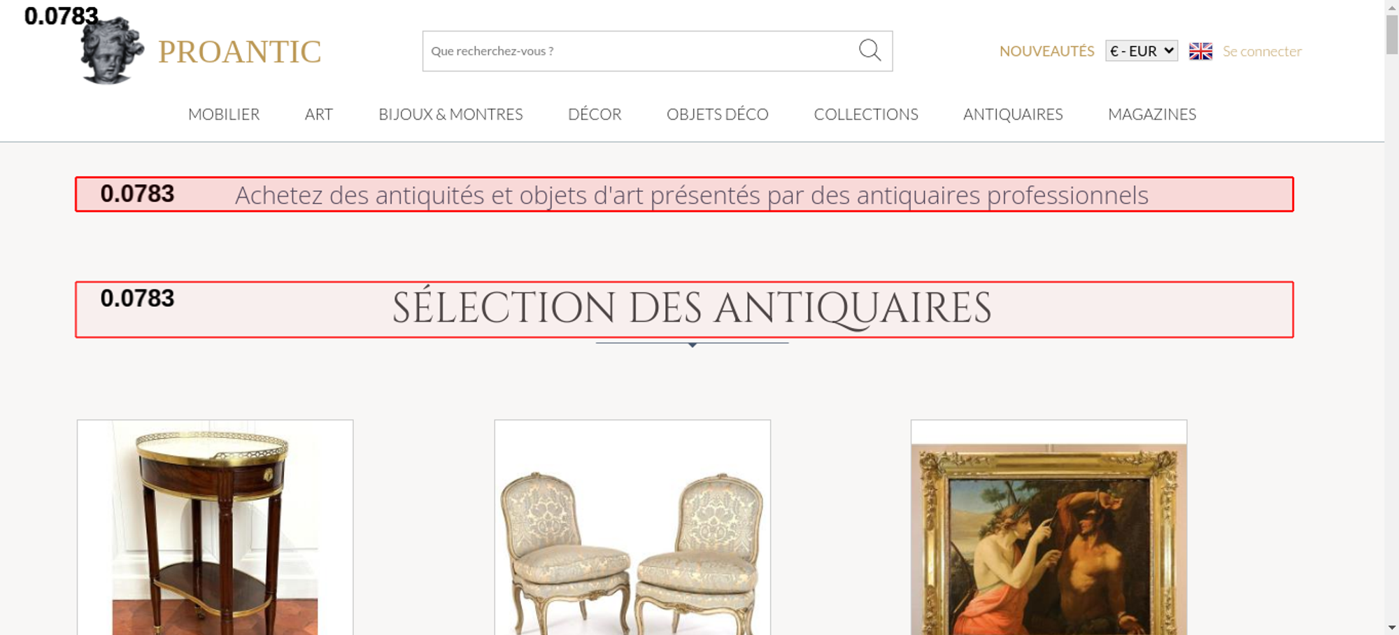 | Offenders: https://www.proantic.com/css/A.googlefonts.css,,qtimestampcssproantic+normalize_...cf.argL22mL8H.css https://www.proantic.com/css/A.sweetalert2-v1-2.css+carrousel-09.css,,qtimestamp...cf.59P_56I8JF.css https://www.proantic.com/css/A.sharp-solid.min.css+light.min.css,Mcc.4mM6ZiXh03....cf.s9J1L34NK4.css https://www.proantic.com/css/A.proantic.webflow.024.css,qtimestampcssproantic.pa...cf.ecHK1jBoAe.css https://www.proantic.com/ico/logo_proantic_2024.png https://www.proantic.com/ico/englishflag.png https://www.proantic.com/ico/33flag20px.jpg https://www.proantic.com/ico/44flag20px.png https://www.proantic.com/ico/39flag20px.jpg https://www.proantic.com/ico/line.png https://www.proantic.com/js/sweetalert2.js https://www.proantic.com/ico/facebook_sm.png https://www.proantic.com/ico/pinterest_sm.png https://www.proantic.com/ico/INSTAGRAM-LOGO-SM.png https://www.proantic.com/ico/logo_proantic4a_sm_33.png https://www.googletagmanager.com/gtag/js?id=G-YP51KSLLWR https://www.proantic.com/galerie/jullion/indexImage.jpg https://www.proantic.com/galerie/serignan/img/small/1701205-main-6983797ea72b1.jpg https://www.proantic.com/galerie/une-autre-epoque/img/small/1702977-main-69871e538ef3b.jpg https://www.proantic.com/galerie/antichita-castelbarco/img/small/1700770-main-698303c5abd2c.jpg https://www.proantic.com/galerie/galeriefc/img/small/1636508-main-68f623b229aee.jpg https://www.proantic.com/galerie/mldantiquites/img/small/1694192-main-6974855f83f4a.jpg https://www.proantic.com/galerie/lestresorsdegamaliel/img/small/1661716-main-692aec5fc2096.jpg https://www.proantic.com/galerie/laurybailly/img/small/1698647-main-697de3086d37b.jpg https://www.proantic.com/galerie/des-pulls-dans-ma-commode/img/small/1696482-main-69791bb9c1859.jpg https://www.proantic.com/galerie/seigneuremilie/img/small/1691055-main-696e3f22eaa72.jpg https://www.proantic.com/galerie/des-pulls-dans-ma-commode/img/small/1668655-main-695a9640adcdc.jpg https://www.proantic.com/galerie/antichita-castelbarco/img/small/1699572-main-69805fc3b4902.jpg https://www.proantic.com/galerie/des-pulls-dans-ma-commode/img/small/1649146-main-690f86206b6b3.jpg https://www.proantic.com/galerie/laurybailly/img/small/903267-main-6210101e02fa4.jpg https://www.proantic.com/galerie/phc/img/small/1560714-main-68ba0d14295c5.jpg https://www.proantic.com/galerie/une-autre-epoque/img/small/1703291-main-69878008d1323.jpg https://www.proantic.com/galerie/seigneuremilie/img/small/1700369-main-698222414eb00.jpg https://www.proantic.com/galerie/galeriefc/img/small/1627678-main-68e2cdaa9d94e.jpg https://www.proantic.com/galerie/philippecote/img/small/1700856-main-69831e39aa17b.jpg https://www.proantic.com/galerie/titanfineart/img/small/1699517-main-697fb125a92c5.jpg https://www.proantic.com/galerie/une-autre-epoque/img/small/1703331-main-69878fcd2d30a.jpg https://www.proantic.com/galerie/mldantiquites/img/small/1703486-main-69887fad10697.jpg https://www.proantic.com/css/jquery-ui-1_10_3-minify.css https://static.doubleclick.net/instream/ad_status.js https://i.ytimg.com/vi/UbDi7Z6y4lA/sddefault.jpg...4lA/sddefault.jpg https://yt3.ggpht.com/4tWvbLsp8MC-PrLY5MN-RWJuCp7uVsgPLn_rfa0nUsKLD9CqylGq4VWVaJ...c0x00ffffff-no-rj https://www.gstatic.com/cv/js/sender/v1/cast_sender.js https://www.proantic.com/ico/proantic_ico_new_6.png https://www.gstatic.com/eureka/clank/132/cast_sender.js |