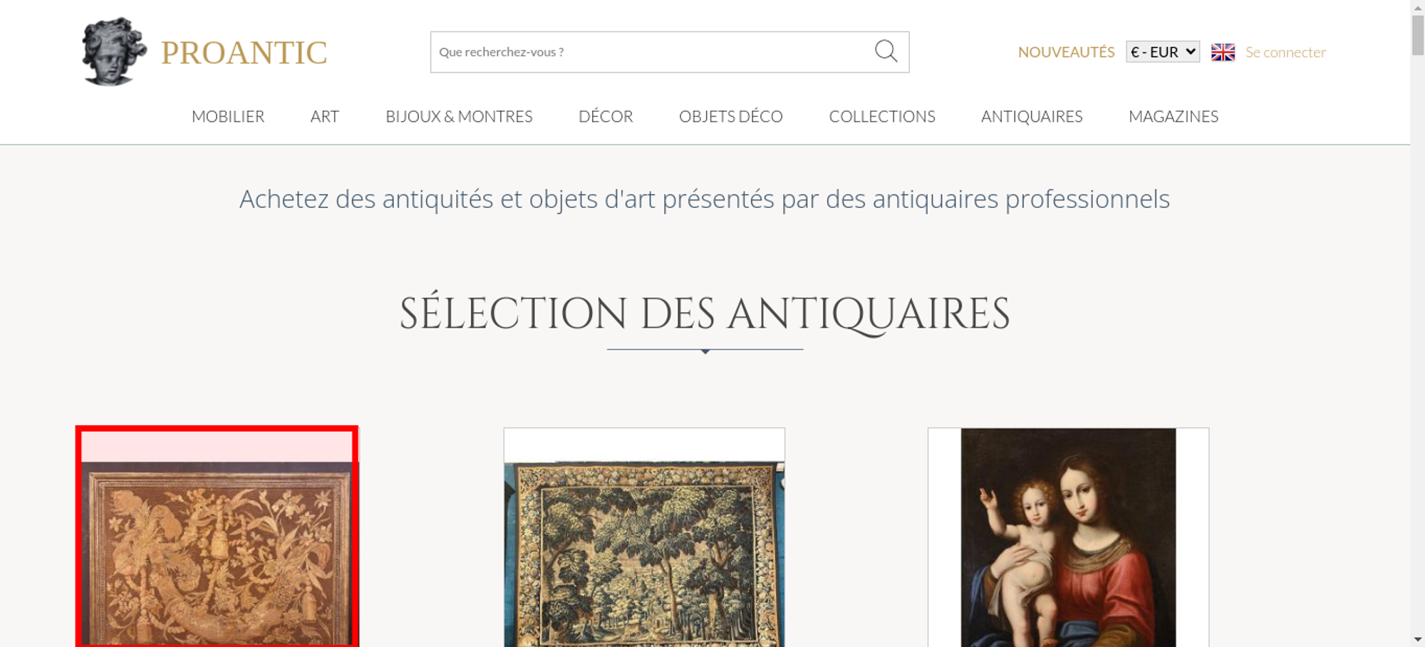 | Offenders: https://www.proantic.com/css/A.googlefonts.css,,qtimestampcssproantic+normalize_...cf.argL22mL8H.css https://www.proantic.com/css/A.sweetalert2-v1-2.css+carrousel-09.css,,qtimestamp...cf.59P_56I8JF.css https://www.proantic.com/css/A.sharp-solid.min.css+light.min.css,Mcc.4mM6ZiXh03....cf.s9J1L34NK4.css https://www.proantic.com/css/A.proantic.webflow.024.css,qtimestampcssproantic.pa...cf.ecHK1jBoAe.css https://www.proantic.com/ico/logo_proantic_2024.png https://www.proantic.com/ico/englishflag.png https://www.proantic.com/ico/33flag20px.jpg https://www.proantic.com/ico/44flag20px.png https://www.proantic.com/ico/39flag20px.jpg https://www.proantic.com/ico/line.png https://www.proantic.com/js/sweetalert2.js https://www.proantic.com/ico/facebook_sm.png https://www.proantic.com/ico/pinterest_sm.png https://www.proantic.com/ico/INSTAGRAM-LOGO-SM.png https://www.proantic.com/ico/logo_proantic4a_sm_33.png https://www.googletagmanager.com/gtag/js?id=G-YP51KSLLWR https://www.proantic.com/galerie/jullion/indexImage.jpg https://www.proantic.com/galerie/des-pulls-dans-ma-commode/img/small/1649146-main-690f86206b6b3.jpg https://www.proantic.com/galerie/des-pulls-dans-ma-commode/img/small/1696482-main-69791bb9c1859.jpg https://www.proantic.com/galerie/antichita-castelbarco/img/small/1699572-main-69805fc3b4902.jpg https://www.proantic.com/galerie/mldantiquites/img/small/1703486-main-69887fad10697.jpg https://www.proantic.com/galerie/seigneuremilie/img/small/1700369-main-698222414eb00.jpg https://www.proantic.com/galerie/laurybailly/img/small/903267-main-6210101e02fa4.jpg https://www.proantic.com/galerie/titanfineart/img/small/1699517-main-697fb125a92c5.jpg https://www.proantic.com/galerie/des-pulls-dans-ma-commode/img/small/1668655-main-695a9640adcdc.jpg https://www.proantic.com/galerie/phc/img/small/1560714-main-68ba0d14295c5.jpg https://www.proantic.com/galerie/antichita-castelbarco/img/small/1700770-main-698303c5abd2c.jpg https://www.proantic.com/galerie/une-autre-epoque/img/small/1703291-main-69878008d1323.jpg https://www.proantic.com/galerie/une-autre-epoque/img/small/1702977-main-69871e538ef3b.jpg https://www.proantic.com/galerie/mldantiquites/img/small/1694192-main-6974855f83f4a.jpg https://www.proantic.com/galerie/mldantiquites/img/small/1697615-main-697b8c163b2e3.jpg https://www.proantic.com/galerie/serignan/img/small/1701205-main-6983797ea72b1.jpg https://www.proantic.com/galerie/lestresorsdegamaliel/img/small/1661716-main-692aec5fc2096.jpg https://www.proantic.com/galerie/phc/img/small/1519493-main-693b194287de8.jpg https://www.proantic.com/galerie/phc/img/small/1457190-main-68bb36bbf0e83.jpg https://www.proantic.com/galerie/laurybailly/img/small/1698647-main-697de3086d37b.jpg https://www.proantic.com/galerie/une-autre-epoque/img/small/1703331-main-69878fcd2d30a.jpg https://www.proantic.com/galerie/philippecote/img/small/1700856-main-69831e39aa17b.jpg https://www.proantic.com/css/jquery-ui-1_10_3-minify.css https://static.doubleclick.net/instream/ad_status.js https://i.ytimg.com/vi/UbDi7Z6y4lA/sddefault.jpg...4lA/sddefault.jpg https://yt3.ggpht.com/4tWvbLsp8MC-PrLY5MN-RWJuCp7uVsgPLn_rfa0nUsKLD9CqylGq4VWVaJ...c0x00ffffff-no-rj https://www.gstatic.com/cv/js/sender/v1/cast_sender.js https://www.gstatic.com/eureka/clank/132/cast_sender.js https://www.proantic.com/ico/proantic_ico_new_6.png |