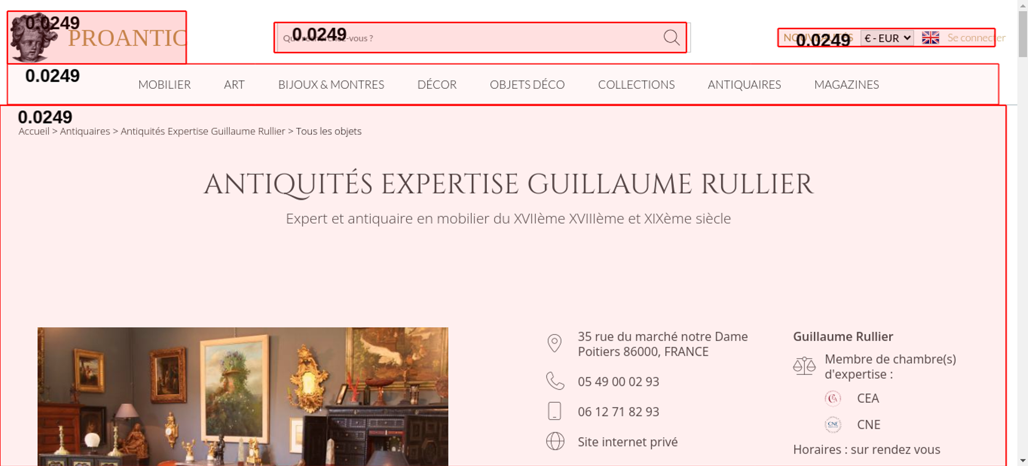 | https://www.proantic.com/galerie/guillaumerullier/ | 36.2 KB | 261.5 KB | | https://www.google.com/recaptcha/api.js?hl=fr | 1011 B | 1.5 KB | | https://www.proantic.com/css/A.googlefonts.css,,qtimestampcssproantic20260226114...cf.rEwHvHvTPS.css | 1.9 KB | 10.6 KB | | https://www.proantic.com/css/A.sweetalert2-v1-2.css,qtimestampcssproantic2026022...cf.cNqGP1Hykr.css | 4.8 KB | 27.0 KB | | https://www.proantic.com/css/A.carrousel-09.css,qtimestampcssproantic20260226114...cf.dnBqBpe3V7.css | 1.9 KB | 5.3 KB | | https://www.proantic.com/css/A.fontawesome.min.css,,qtimestampcssproantic2026022...cf.3EmdiLN2Bl.css | 35.0 KB | 134.5 KB | | https://www.proantic.com/css/A.thin.min.css,,qtimestampcssproantic202602261142+s...cf.n_K6ZlZCwr.css | 587 B | 799 B | | https://www.proantic.com/css/A.light.min.css,,qtimestampcssproantic202602261142+...cf.jkAuv2ZTBd.css | 738 B | 1.5 KB | | https://www.proantic.com/css/A.sharp-duotone-thin.min.css,,qtimestampcssproantic...cf.HyjkBCeIdY.css | 745 B | 1.7 KB | | https://www.proantic.com/css/A.proantic.webflow.024.css,qtimestampcssproantic202...cf.6WZHjCK3Jc.css | 8.8 KB | 39.2 KB | | https://www.proantic.com/css/A.main.css,qtimestampcssproantic2026022611421111222...cf.2QfeH0fI3J.css | 15.0 KB | 84.3 KB | | https://www.proantic.com/ico/logo_proantic_2024.png | 11.9 KB | 11.6 KB | | https://www.proantic.com/ico/englishflag.png | 1.5 KB | 1.1 KB | | https://www.proantic.com/ico/33flag20px.jpg | 1.2 KB | 869 B | | https://www.proantic.com/ico/44flag20px.png | 2.8 KB | 2.5 KB | | https://www.proantic.com/ico/39flag20px.jpg | 1.2 KB | 899 B | | https://ajax.googleapis.com/ajax/libs/jquery/3.6.0/jquery.min.js | 30.9 KB | 87.4 KB | | https://www.proantic.com/js/sweetalert2.js | 15.0 KB | 47.2 KB | | https://cdn.jsdelivr.net/npm/promise-polyfill@8/dist/polyfill.min.js | 2.1 KB | 4.3 KB | | https://www.proantic.com/galerie/guillaumerullier/indexImage.jpg | 43.6 KB | 43.3 KB | | https://www.proantic.com/img/CEA-LOGO.png?v=1 | 61.6 KB | 61.2 KB | | https://www.proantic.com/img/CNE-LOGO.png?v=1 | 142.9 KB | 142.5 KB | | https://www.proantic.com/ico/facebook_sm.png | 10.4 KB | 10.1 KB | | https://www.proantic.com/ico/INSTAGRAM-LOGO-SM.png | 67.8 KB | 67.4 KB | | https://www.proantic.com/ico/logo_proantic4a_sm_33.png | 41.1 KB | 40.8 KB | | https://www.googletagmanager.com/gtag/js?id=G-YP51KSLLWR | 148.7 KB | 431.0 KB | | https://www.gstatic.com/recaptcha/releases/qm3PSRIx10pekcnS9DjGnjPW/recaptcha__fr.js | 365.3 KB | 853.2 KB | | https://www.proantic.com/galerie/guillaumerullier/img/small/1726832-main-69bbc564a9c31.jpg | 16.6 KB | 16.3 KB | | https://www.proantic.com/galerie/guillaumerullier/img/small/1726819-main-69bbc07869b31.jpg | 16.2 KB | 15.8 KB | | https://www.proantic.com/galerie/guillaumerullier/img/small/1723120-main-69b2fbdca6730.jpg | 20.0 KB | 19.7 KB | | https://www.proantic.com/galerie/guillaumerullier/img/small/1723100-main-69b2f7babef17.jpg | 23.6 KB | 23.3 KB | | https://www.proantic.com/galerie/guillaumerullier/img/small/1721367-main-69b007456d649.jpg | 11.4 KB | 11.1 KB | | https://www.proantic.com/galerie/guillaumerullier/img/small/1721291-main-69afefea2fd68.jpg | 26.2 KB | 25.9 KB | | https://www.proantic.com/galerie/guillaumerullier/img/small/1712628-main-699c24bf460ab.jpg | 12.7 KB | 12.3 KB | | https://www.proantic.com/galerie/guillaumerullier/img/small/1712623-main-699c1fd87f7c1.jpg | 13.4 KB | 13.1 KB | | https://www.proantic.com/galerie/guillaumerullier/img/small/1711535-main-699982b3983e3.jpg | 16.9 KB | 16.6 KB | | https://www.proantic.com/galerie/guillaumerullier/img/small/1708998-main-69943ad32674d.jpg | 15.7 KB | 15.4 KB | | https://www.proantic.com/galerie/guillaumerullier/img/small/1707976-main-6991aaf04808b.jpg | 20.0 KB | 19.6 KB | | https://www.proantic.com/galerie/guillaumerullier/img/small/1705631-main-698cbb155192e.jpg | 19.9 KB | 19.6 KB | | https://www.proantic.com/galerie/guillaumerullier/img/small/1704474-main-698b02bd9eccb.jpg | 11.6 KB | 11.3 KB | | https://www.proantic.com/galerie/guillaumerullier/img/small/1703812-main-69899175587eb.jpg | 11.2 KB | 10.9 KB | | https://www.proantic.com/galerie/guillaumerullier/img/small/1702172-main-6985ac91ad60a.jpg | 14.4 KB | 14.1 KB | | https://www.proantic.com/galerie/guillaumerullier/img/small/1700767-main-698304bdb05cc.jpg | 23.1 KB | 22.8 KB | | https://www.proantic.com/galerie/guillaumerullier/img/small/1700606-main-698231d7b7121.jpg | 15.9 KB | 15.6 KB | | https://www.proantic.com/galerie/guillaumerullier/img/small/1697867-main-697c76408e3a8.jpg | 12.2 KB | 11.9 KB | | https://www.proantic.com/galerie/guillaumerullier/img/small/1697497-main-697b75c312c48.jpg | 21.0 KB | 20.7 KB | | https://www.proantic.com/galerie/guillaumerullier/img/small/1697072-main-697a5488306d4.jpg | 23.7 KB | 23.4 KB | | https://www.proantic.com/webfonts/lato-v24-latin-regular.woff2 | 23.3 KB | 23.0 KB | | https://www.proantic.com/webfonts/open-sans-v40-latin-regular.woff2 | 18.5 KB | 18.2 KB | | https://www.proantic.com/webfonts/fa-thin-100.woff2 | 378.5 KB | 377.8 KB | | https://www.proantic.com/webfonts/lato-v24-latin-300.woff2 | 23.0 KB | 22.7 KB | | https://www.proantic.com/webfonts/open-sans-v40-latin-300.woff2 | 18.6 KB | 18.3 KB | | https://www.proantic.com/webfonts/cinzel-v23-latin-regular.woff2 | 13.7 KB | 13.4 KB | | https://www.proantic.com/webfonts/open-sans-v40-latin-600.woff2 | 18.5 KB | 18.2 KB | | https://www.proantic.com/webfonts/open-sans-v40-latin-800.woff2 | 18.5 KB | 18.2 KB | | https://www.proantic.com/webfonts/open-sans-v40-latin-700.woff2 | 18.1 KB | 17.8 KB | | https://www.proantic.com/webfonts/material-symbols-outlined-v212-latin-100.woff2 | 265.4 KB | 264.8 KB | | https://www.proantic.com/fonts/FontAwesome.otf | 107.5 KB | 107.1 KB | | https://www.proantic.com/webfonts/open-sans-v40-latin-italic.woff2 | 19.1 KB | 18.8 KB | | https://www.google.com/recaptcha/api2/anchor...ptcha/api2/anchor | 50.5 KB | 94.7 KB | | https://www.proantic.com/css/jquery-ui-1_10_3-minify.css | 5.0 KB | 